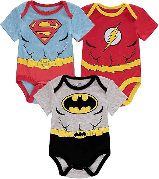 DC Comics Boys' Justice League 3 Pack Bodysuits Superman Batman The Flash
