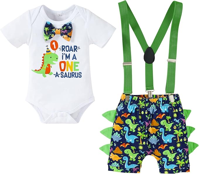 Baby Boys 1st Birthday Cake Smash Outfit Short Sleeve Bodysuit Bloomers Adjustable Y Back Suspenders Clothes Set