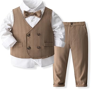 Baby Boys' 4-Piece Gentleman Suit Set with Shirt, Vest, Bowtie and Pants Outfits