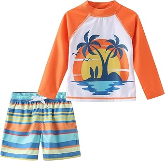 Aisyee Toddler Baby Boys Rash Guard Set for Kids Boys Swim Set with Swim Trunks Long Sleeve Bathing Suits