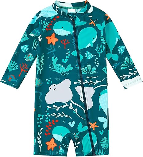 Baby Boy Swimsuit Rash Guard Shirts Toddler Boy Swimwear Full Zipper UPF 50+ Sun Protection Infant One Piece Bathing Suit