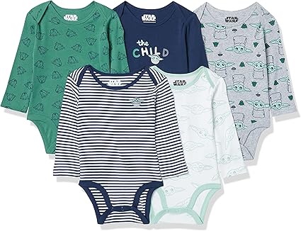Amazon Essentials Disney | Marvel | Star Wars Unisex Babies' Long-Sleeve Bodysuits, Pack of 5
