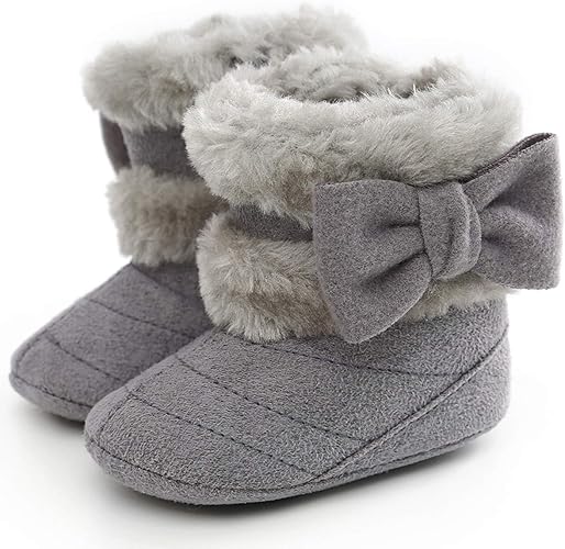 Baby Boy Girl Winter Snow Boots, Cotton Anti-Skid Sole Bow Warm Infant Toddler Prewalker Booties Crib Shoes for Girls Boys