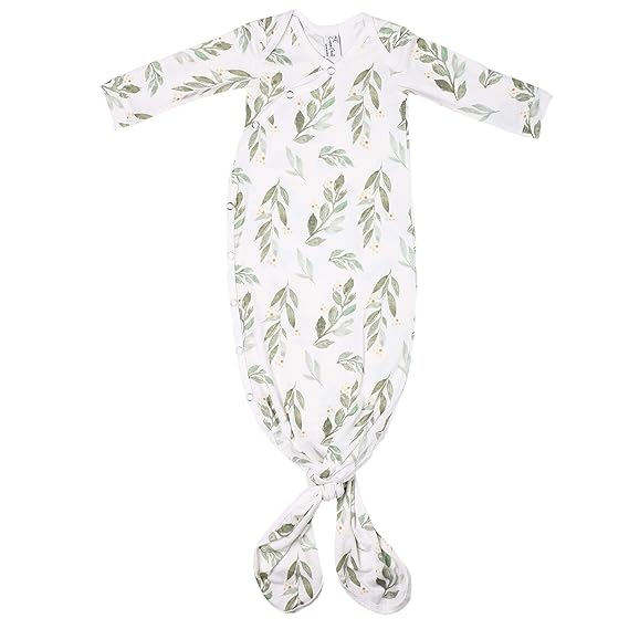 Copper Pearl Baby Gown - Knotted Newborn Sleepers for Baby Boy and Girl, Soft Stretchy Long Sleeve Infant Gowns with Bottom Tie and Hand Mittens, Perfect Hospital Coming Home Outfit (Fern)