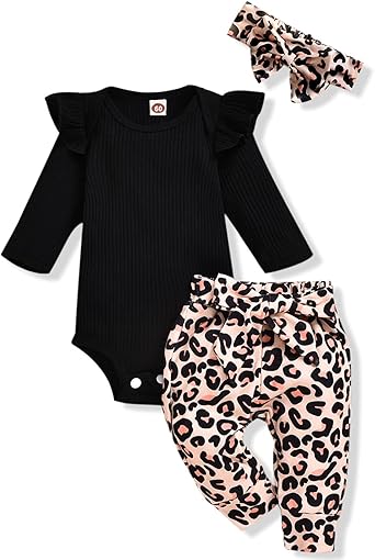 Aalizzwell Preemie Newborn Infant Baby Girls Clothes Ribbed Romper Bodysuit Pants Set Fall Winter Outfits
