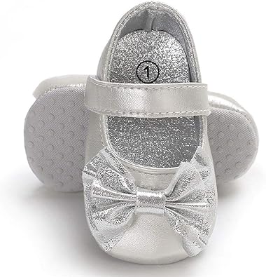 Baby Girl Shoes Mary Jane Flats with Bowknot Non-Slip Toddler First Walkers Infant Dress Shoes