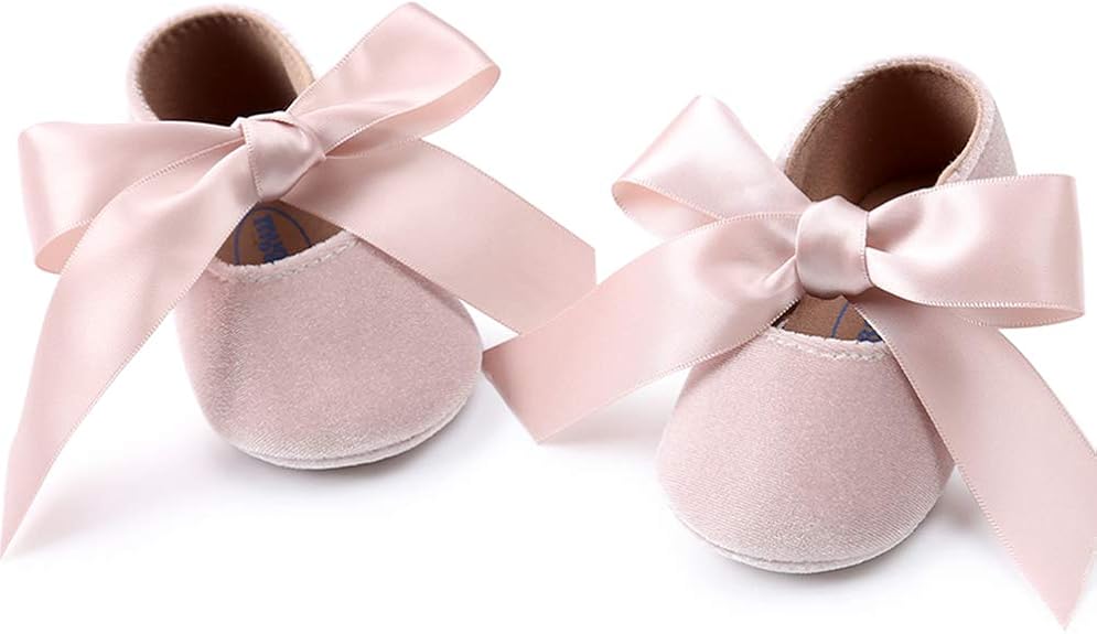 Baby Girls Mary Jane Flats Anti-Slip Rubber Sole Bow Toddler Princess Dress Shoes