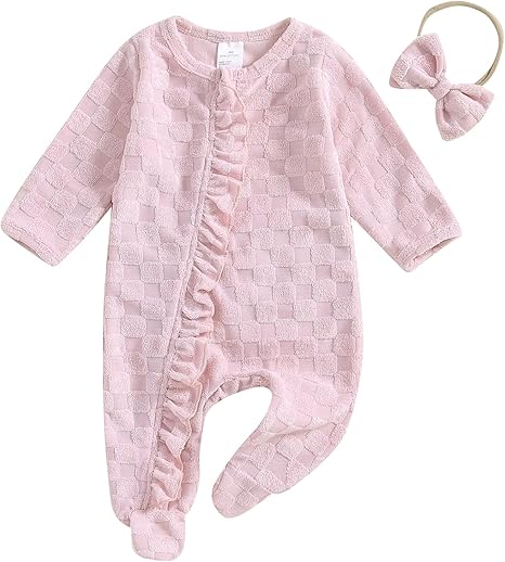 Baby Romper Bodysuit Girls Clothes Long Sleeve Frills Zipped Footies Jumpsuit With Headband Fall Outfits