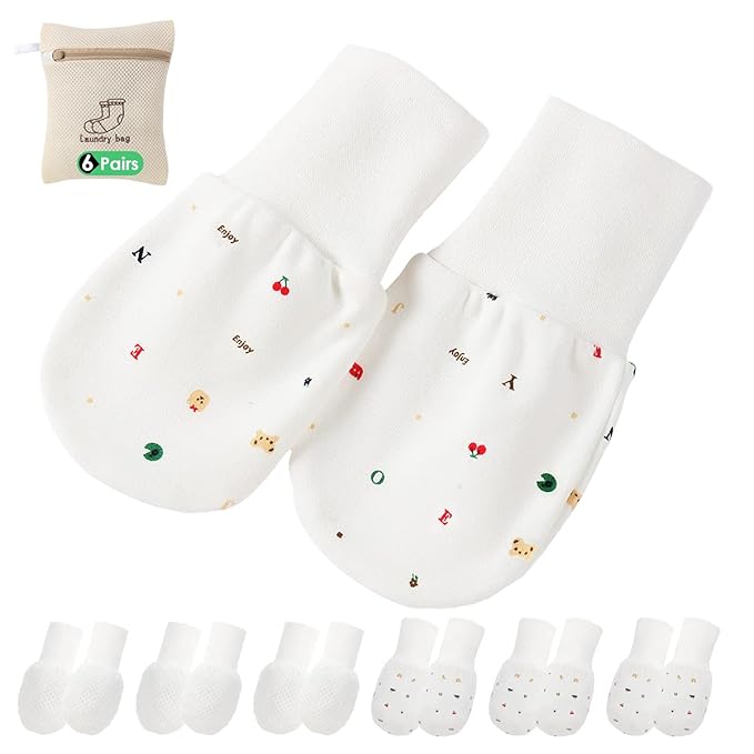 Baby Mittens Anti Scratch Baby Girl Mittens No Scratch Mittens Baby Boys Hands Gloves for 6~12 Months Boys Girls (6 Pairs-L)