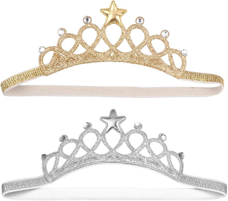 Beaupretty 2PCS Baby Girls Crystal Crown Tiara Hair Belt Headband Soft Headwrap Princess Headpiece Children Hair Accessories for Birthday Party, Photography (Silver+Gold)