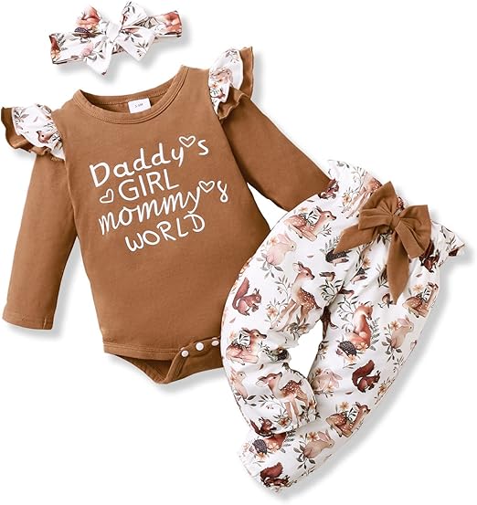 Kislio Newborn Baby Camouflage Outfit Daddys Girl Ruffle Romper Camo Pants Headband Set