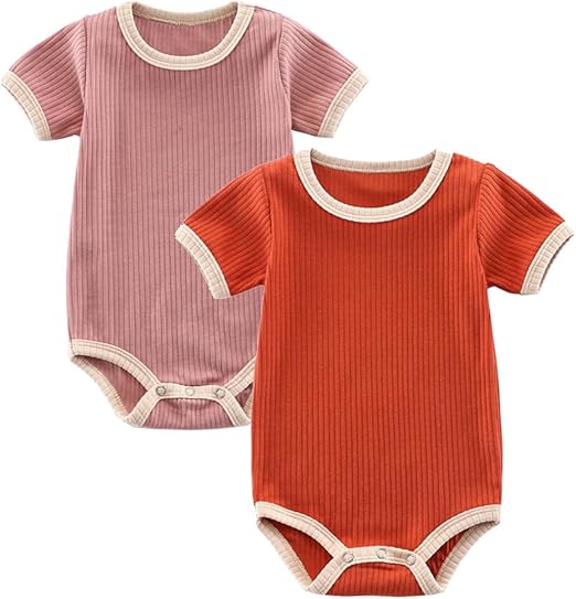 Baby Bodysuit, Short Sleeve Boys Girls Romper, 100% Cotton Unisex Baby Clothes, Button Outfit, Pack of 2