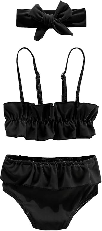 Amberetech Baby Girls 2pcs Tankini Swimming Suit Solid Color Bikini Bathing Suit