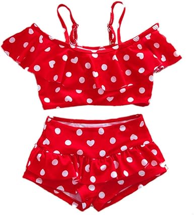 Baby Girl Cute Swimsuits Red 2 Pieces White Dot Skirt Swimwear Sets