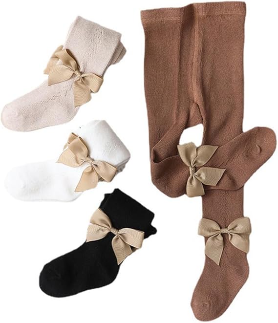 Baby Girl Tights Toddler Cable Knit Tights with Bow Seamless Mesh Leggings Stockings Infant Cotton Pantyhose