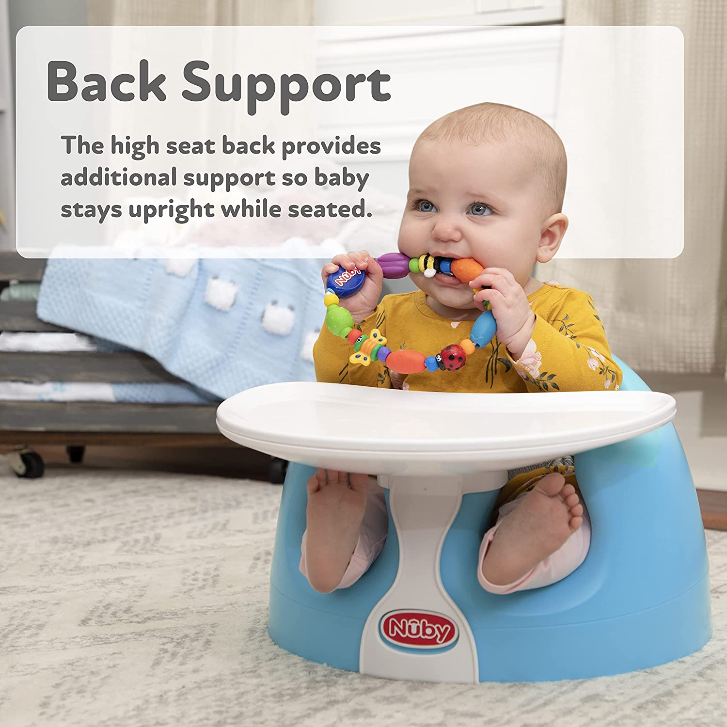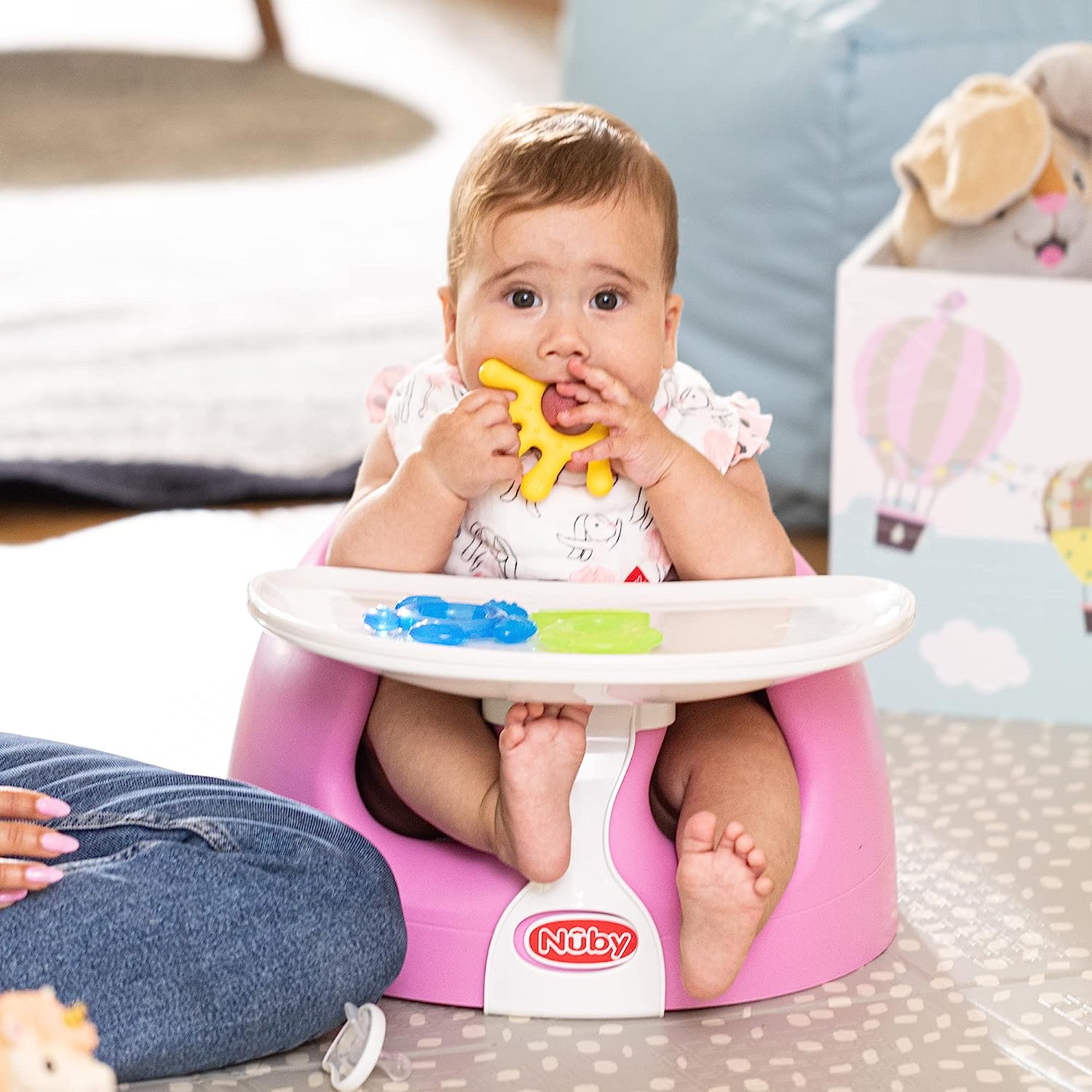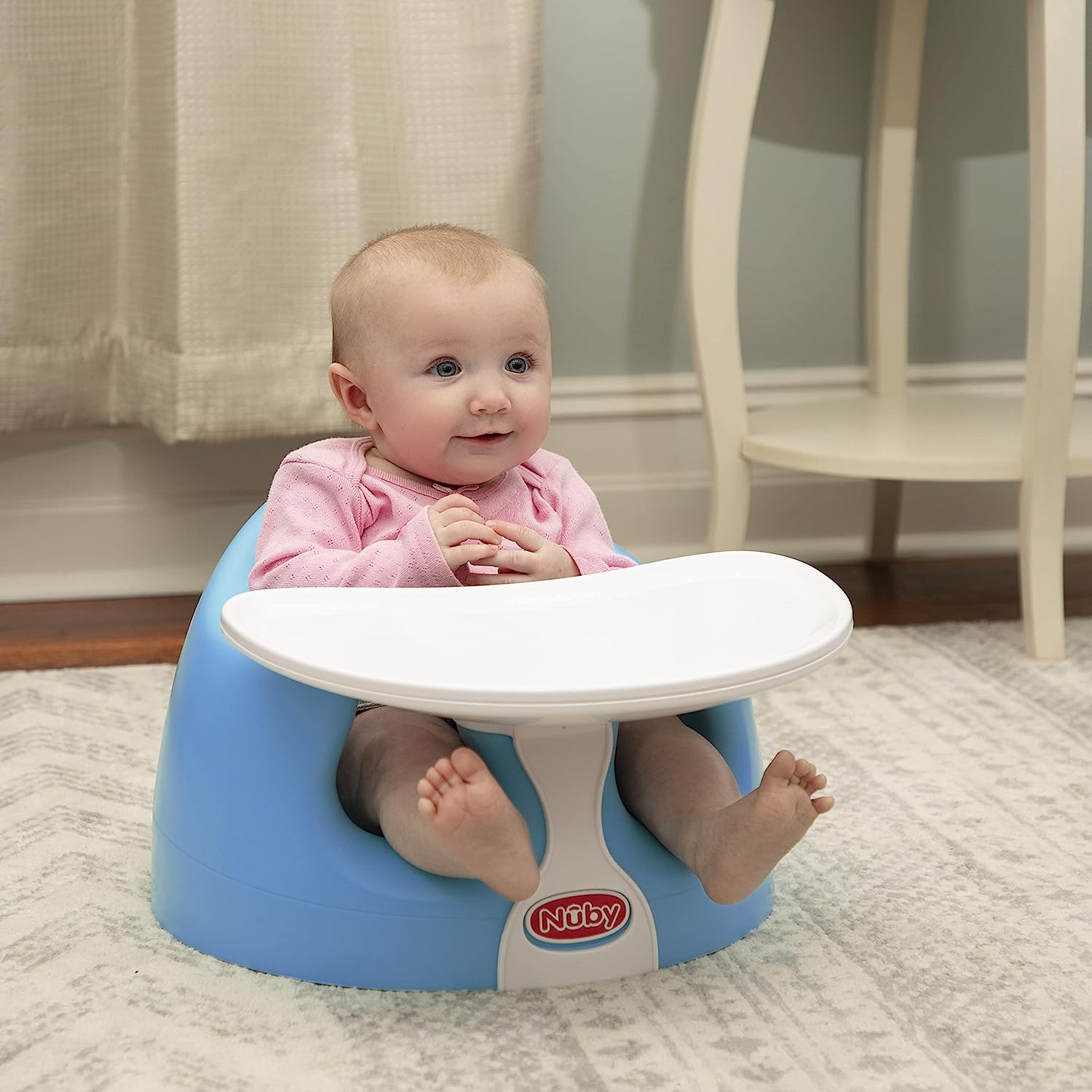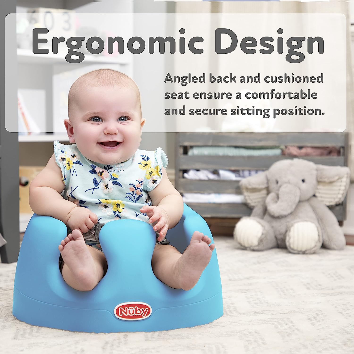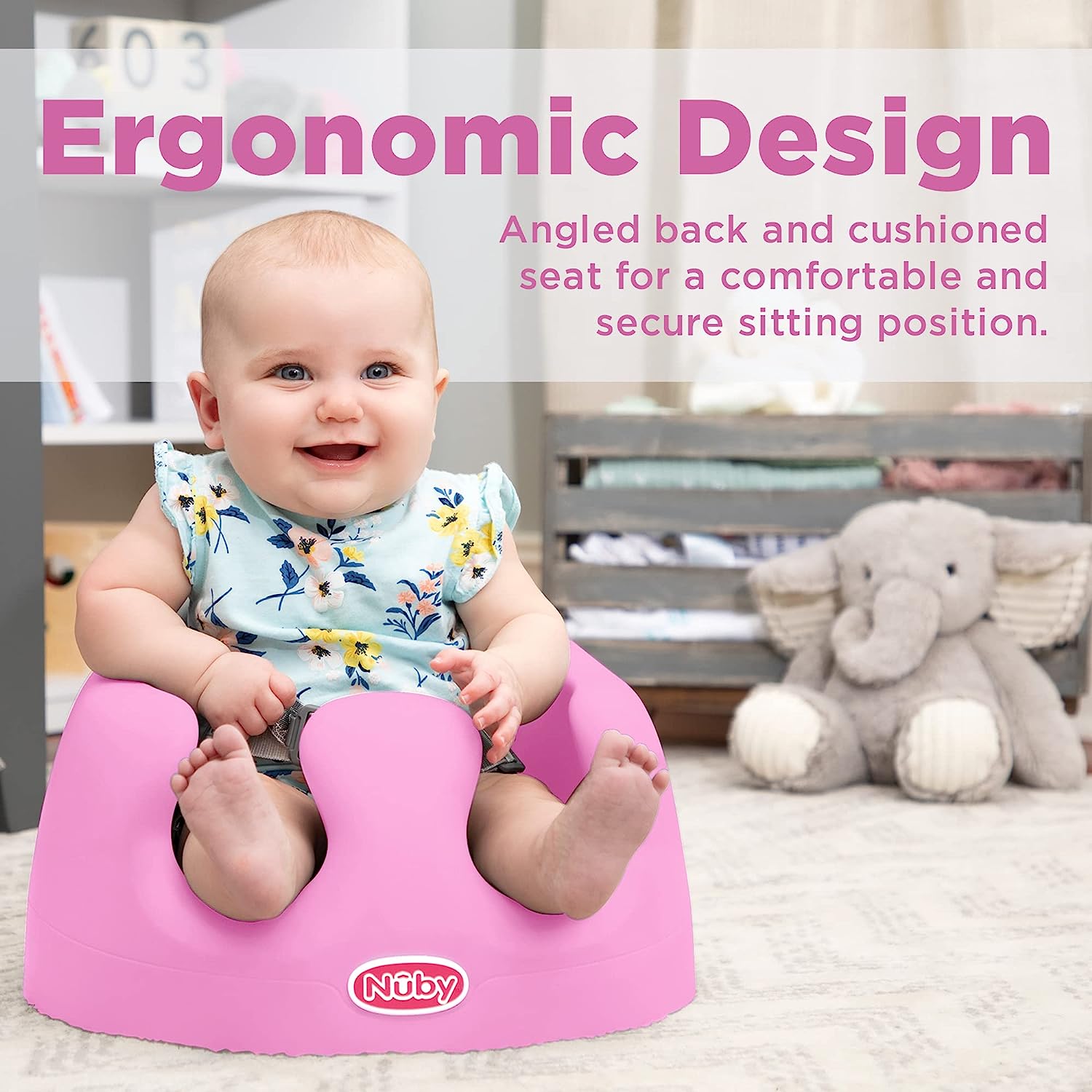 Nuby’s My Floor Seat helps babies sit up on their own, so they can easily and safely interact with the world around them. My Floor Seat has an ergonomic design which encourages your baby to sit with an upright posture. The angled seat raises baby’s legs, tilting their hips where they sit naturally against the curved seatback. Its high-back area provides additional support to little ones as they sit up. With baby’s comfort in mind, My Floor Seat has a wide leg area that won’t pinch or squeeze baby’s little legs. The seat is made of soft foam cushion that gently and comfortably supports little ones as they sit. The built-in safety belt gives parents peace of mind that their little one is secure while using My Floor Seat.