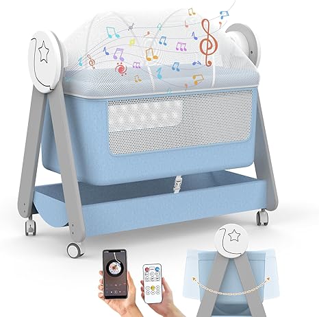 Electirc Baby Bassinet, Rocking Baby Bassinets Bed Sleeper for Newborn with Remote Control, Smart Baby Crib with Wheels, Portable Baby Cradle for Infant with 3-Speed Swing and Timer, Bluetooth(Blue)