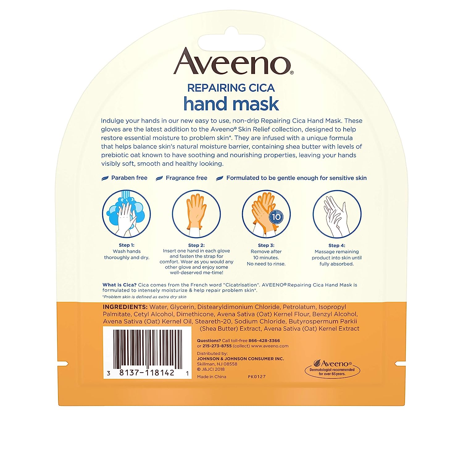 Pamper your hands with Aveeno Repairing CICA Hand Masks. These skin relief gloves are enriched with shea butter and moisturizing prebiotic oat—known to have soothing and nourishing properties—to help restore essential moisture to extra-dry skin, leaving your hands visibly soft, smooth, and healthy-looking. From a dermatologist-recommended brand, these non-drip CICA hand masks are formulated to be gentle enough for sensitive skin and are both paraben- and fragrance-free. The hand masks are easy to use: Simply wash and dry your hands, wear the gloves for approximately 10 minutes, and remove—no need to rinse.