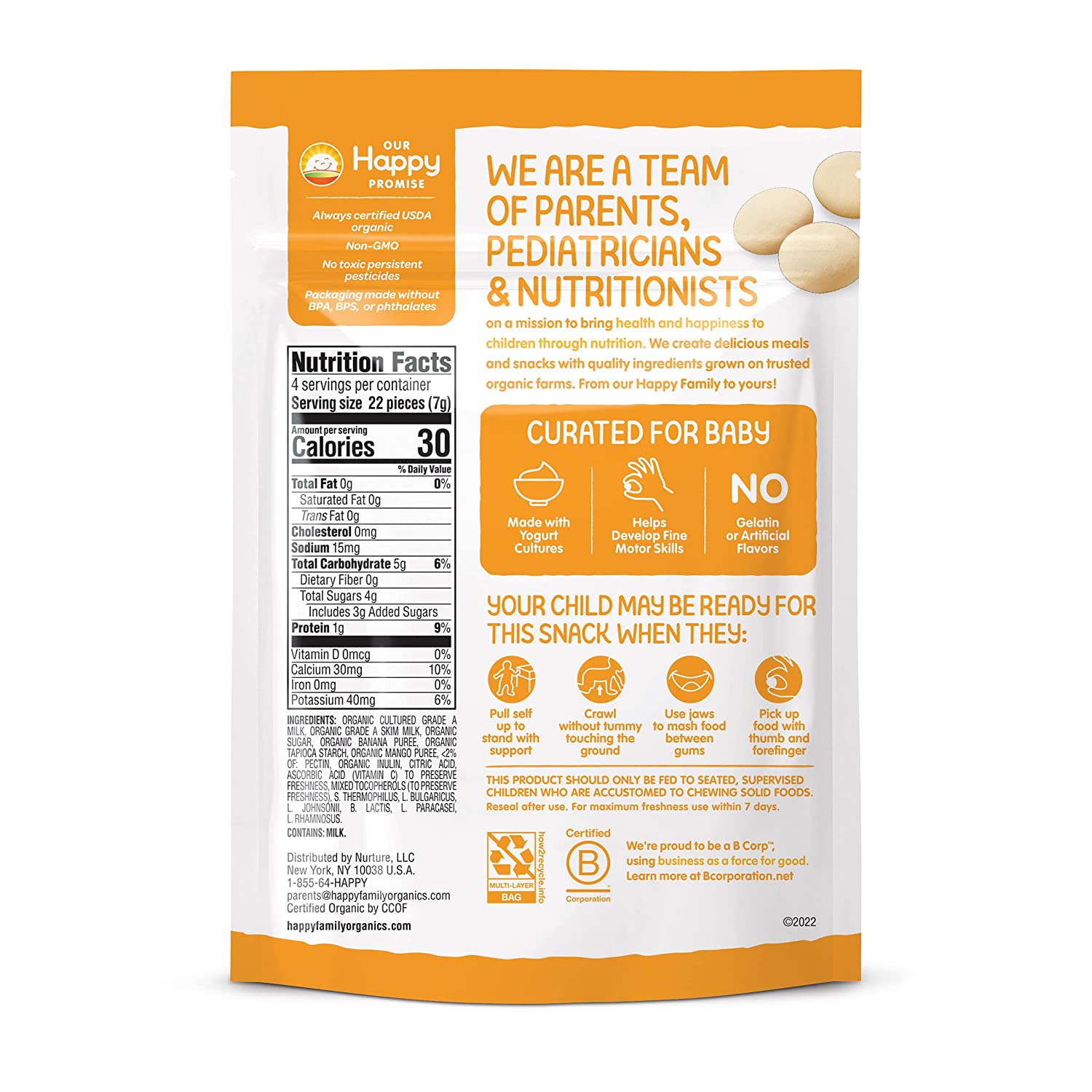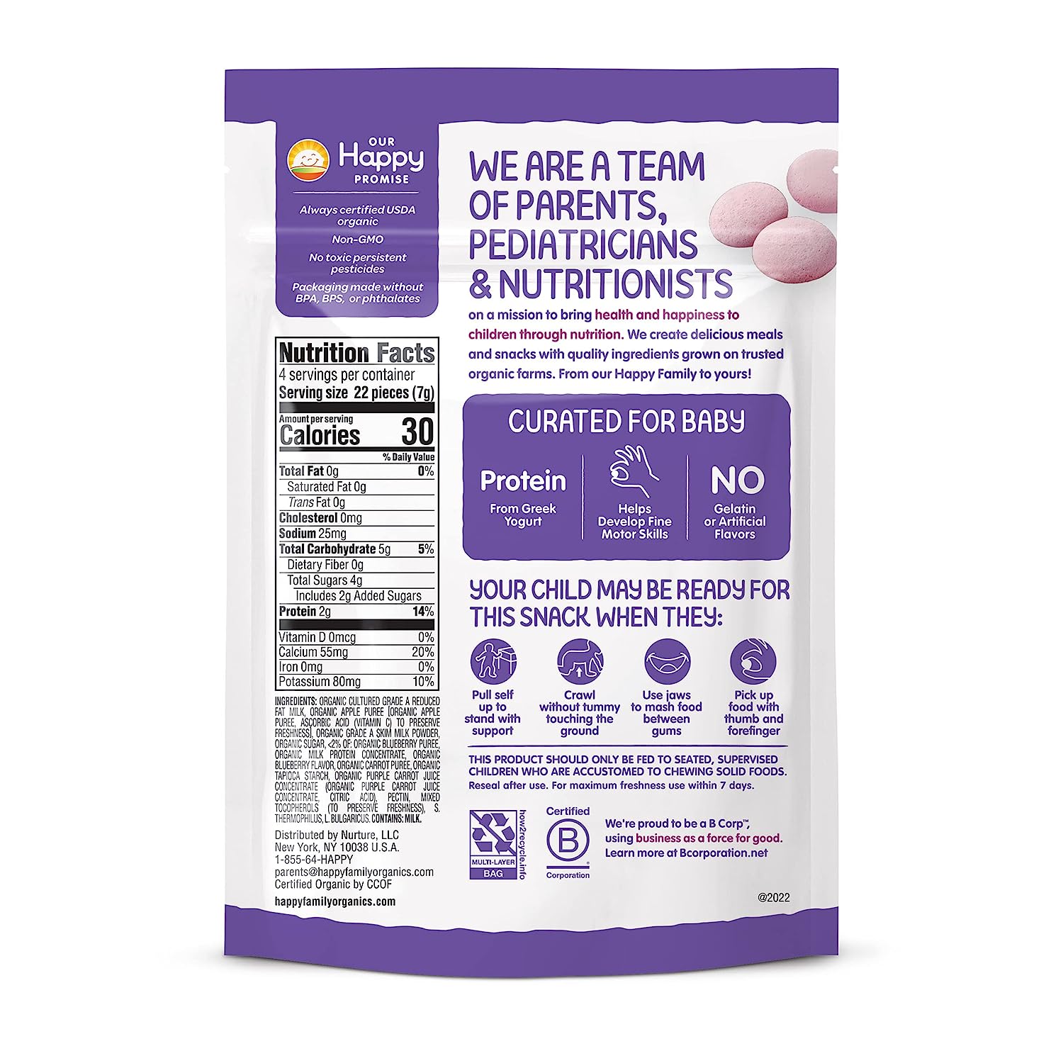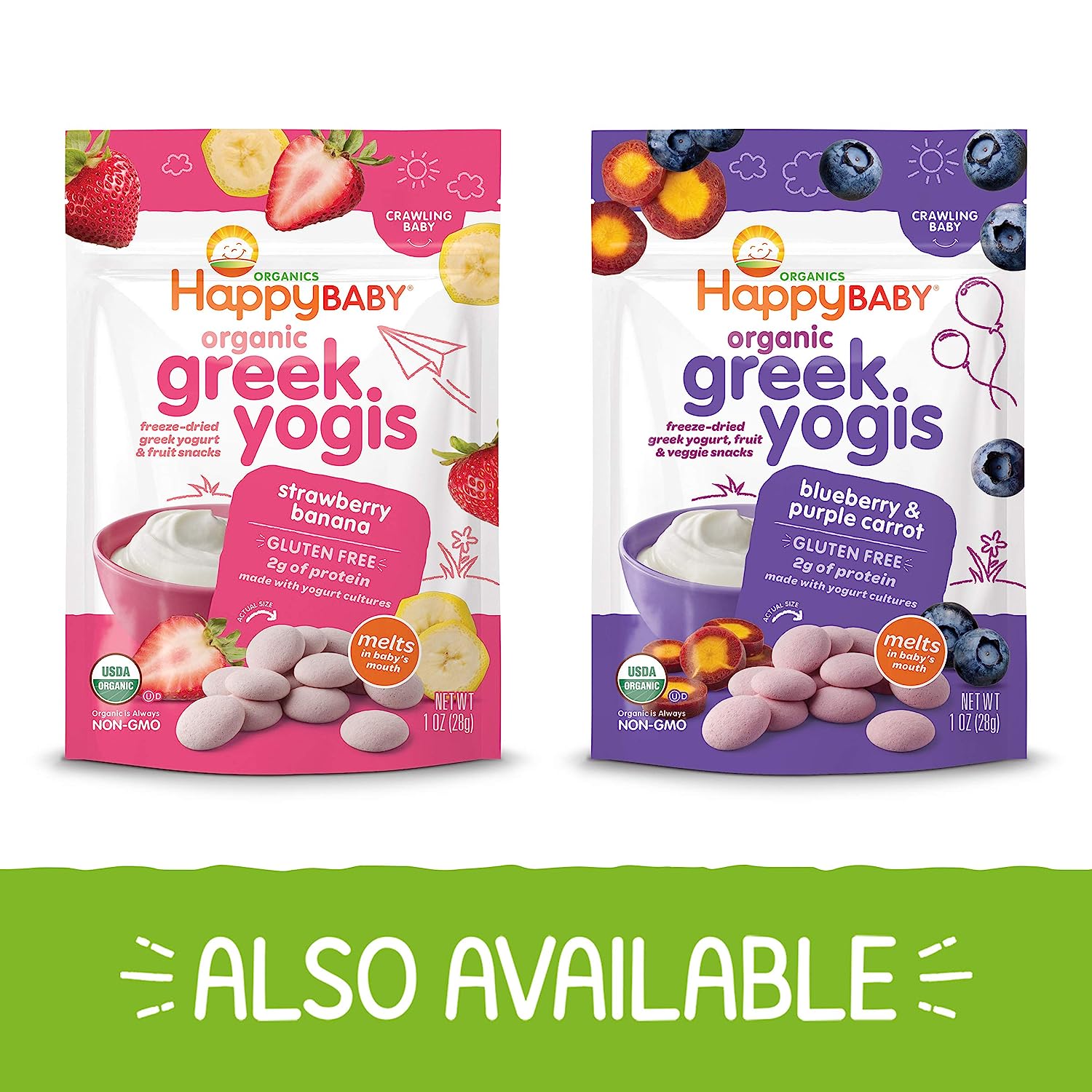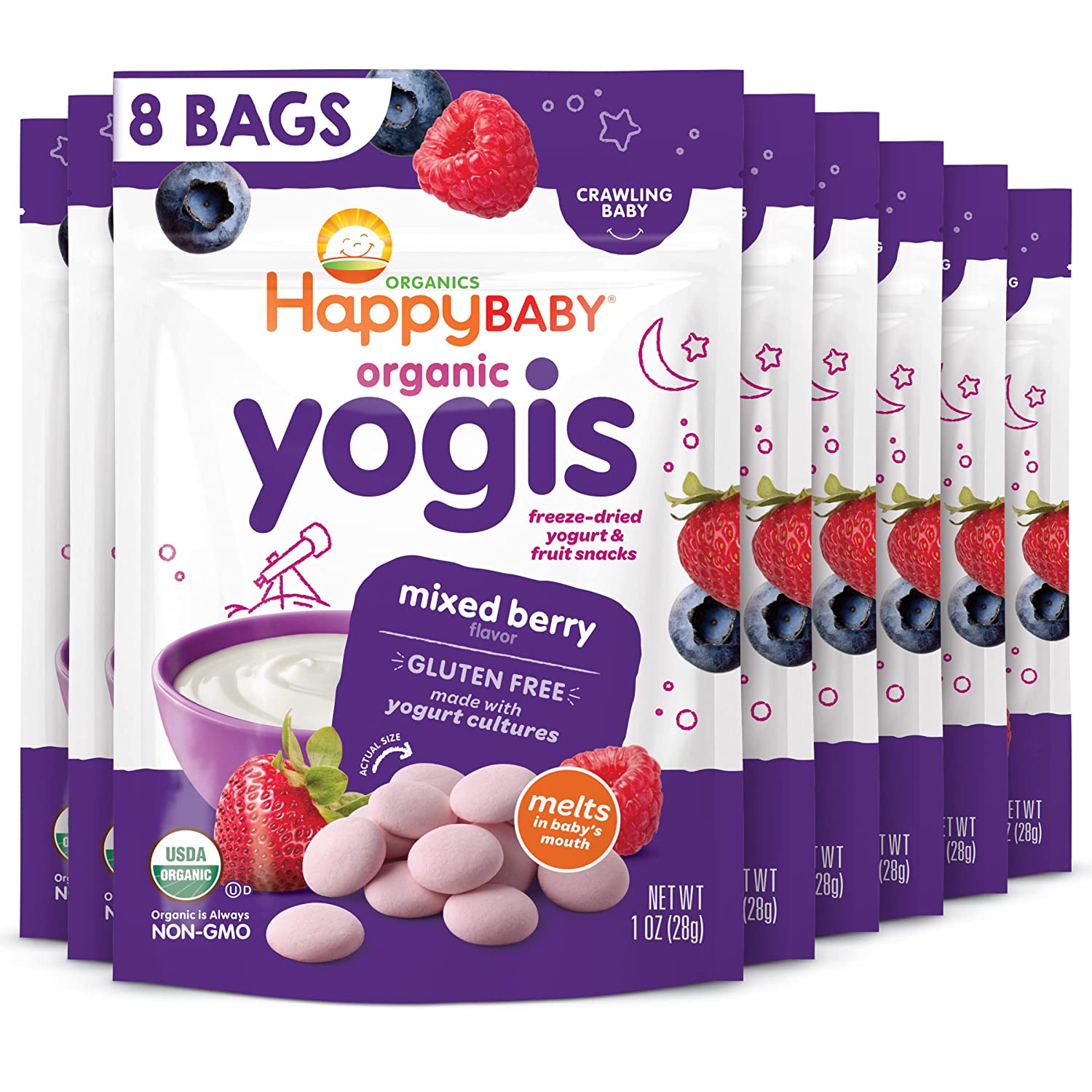 These yogis delight Baby’s taste buds with a burst of fruit flavor. These freeze dried organic yogurt drops melt in Baby’s mouth, and they taste so good, you may not be able to resist sneaking a few for yourself!
