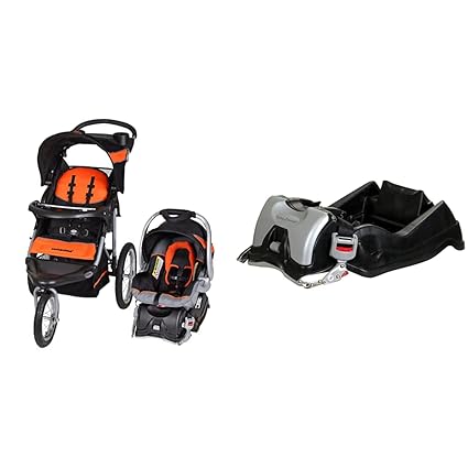 Baby Trend Expedition Jogger Travel System, Millennium Orange + Baby Trend EZ Flec Loc 32 Infant Car Seat Base, Black