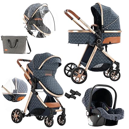 Nine point nine 3 in 1 Baby Stroller Travel System Combo Set, Reversible Infant Stroller with Aluminum Frame, Convertible Toddler Newborn Pram Carriage of One-Click Folding (MGV9-BLUE Without Base)