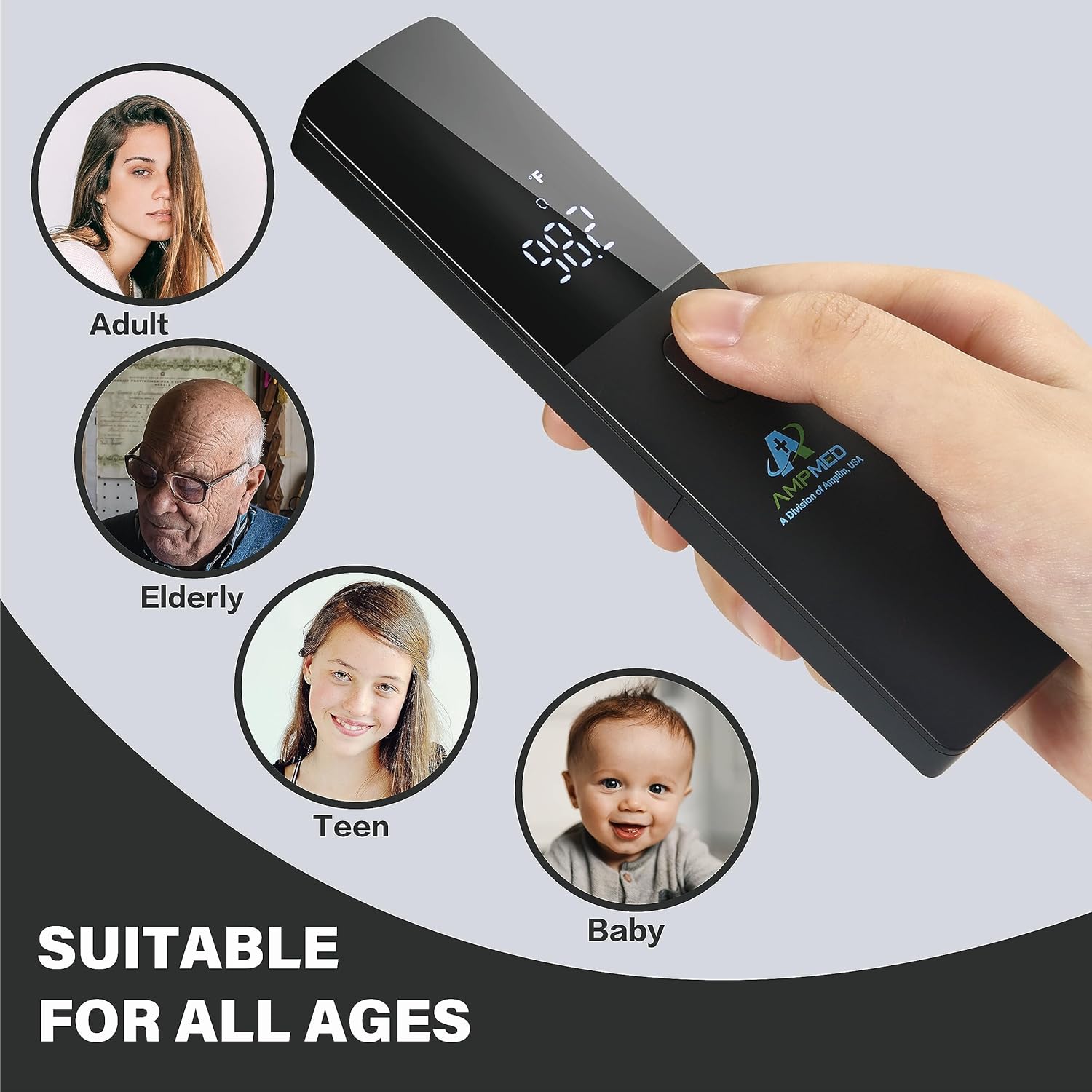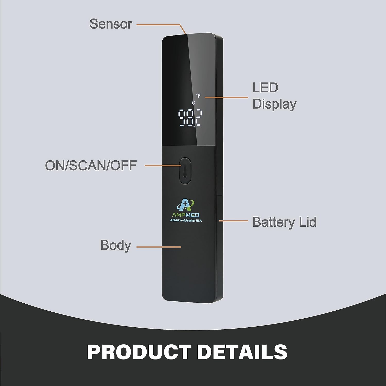 Amplim Non Contact/No Touch Digital Forehead Thermometer for Adults, Kids, and Babies, Touchless Temporal Thermometer FSA HSA Approved, Black