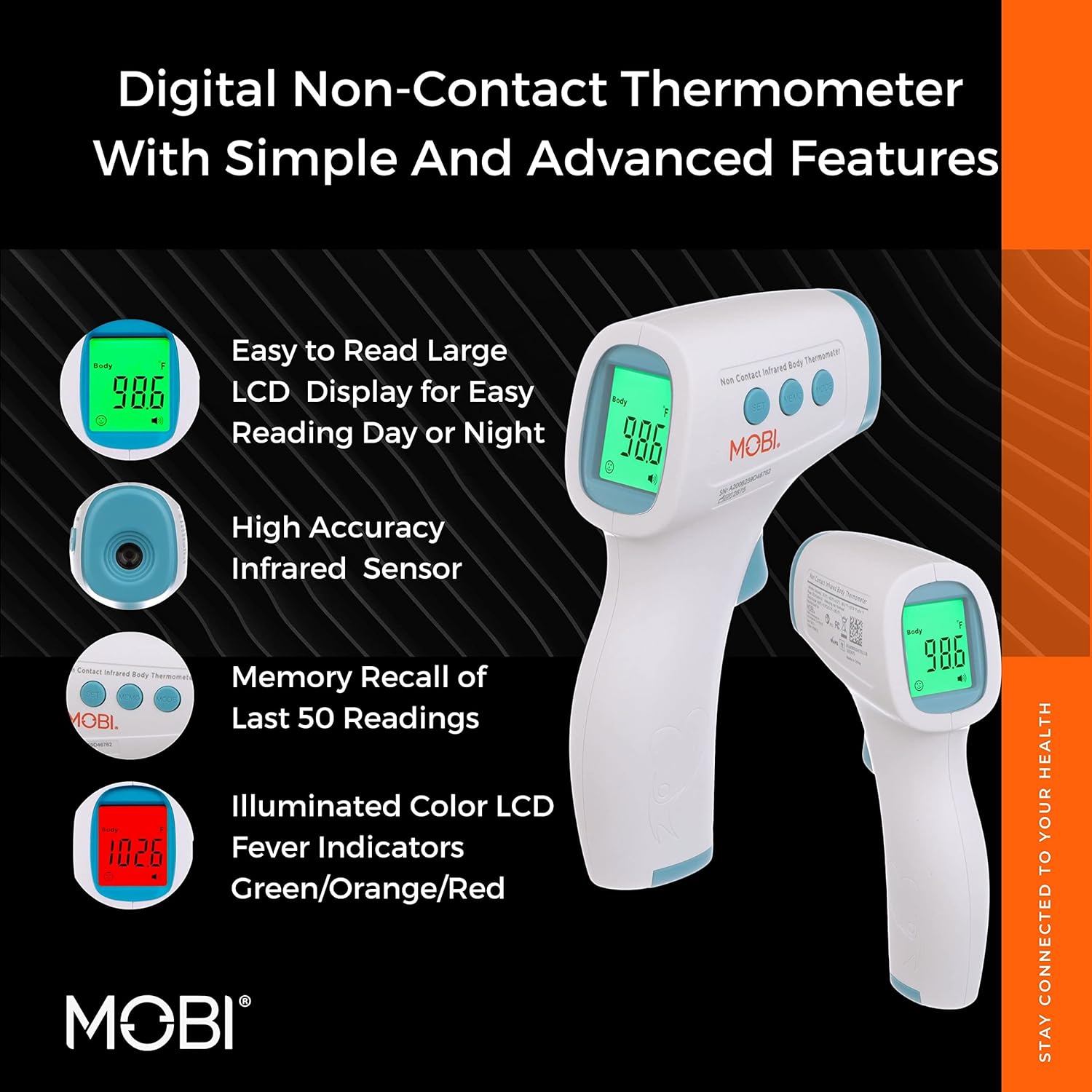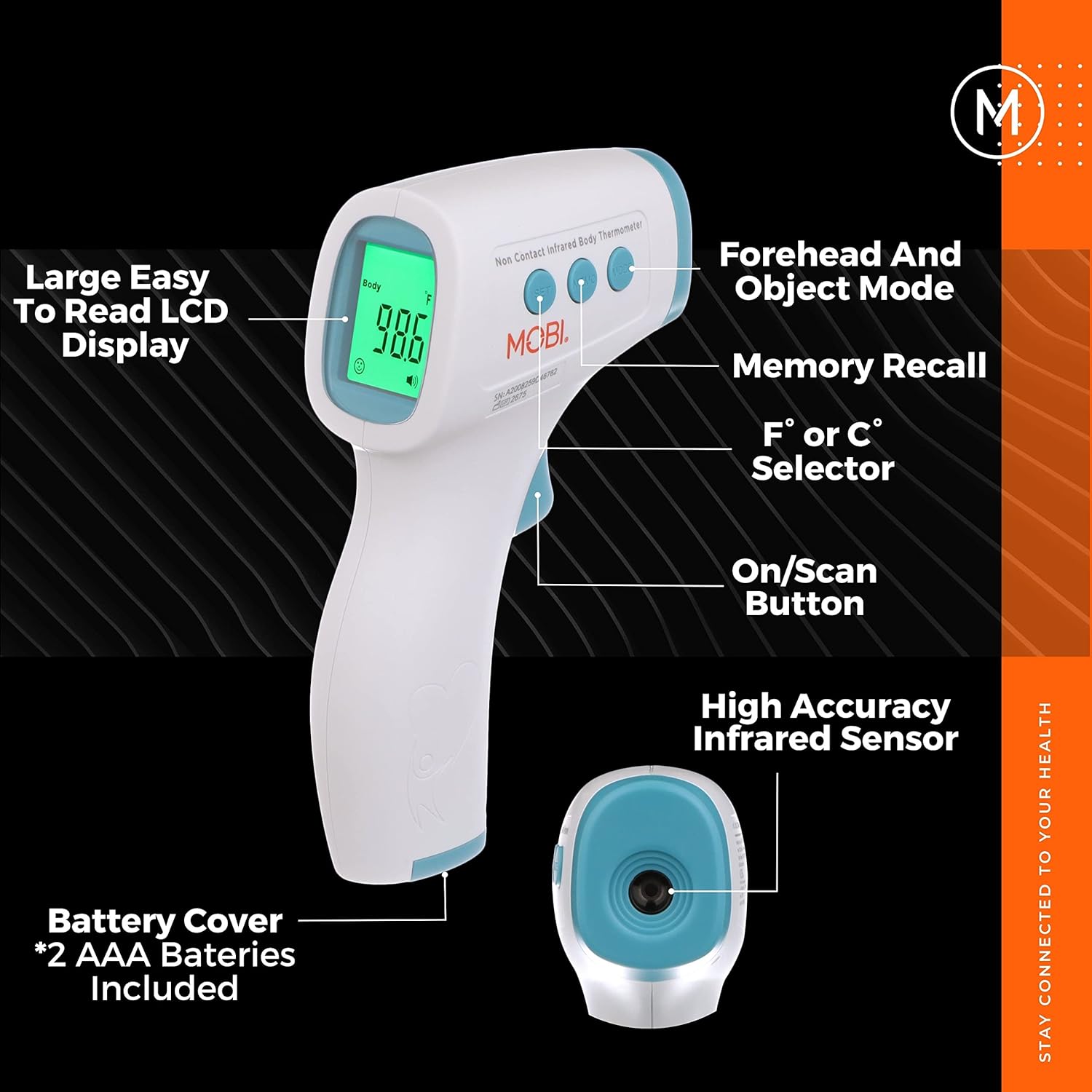 MOBI - Baby Non-Contact Forehead Digital Thermometer with Object Temperature Mode - Touchless with High Fever Indicator - No Touch Thermometer for Baby, Kids, & Adults - Intrusive Free Readings