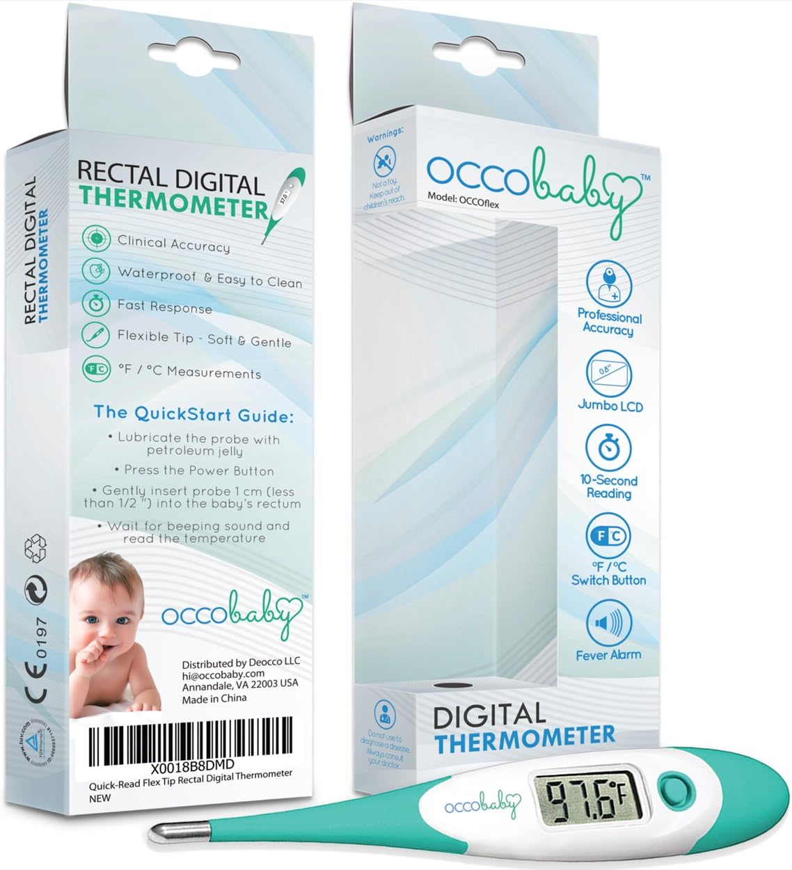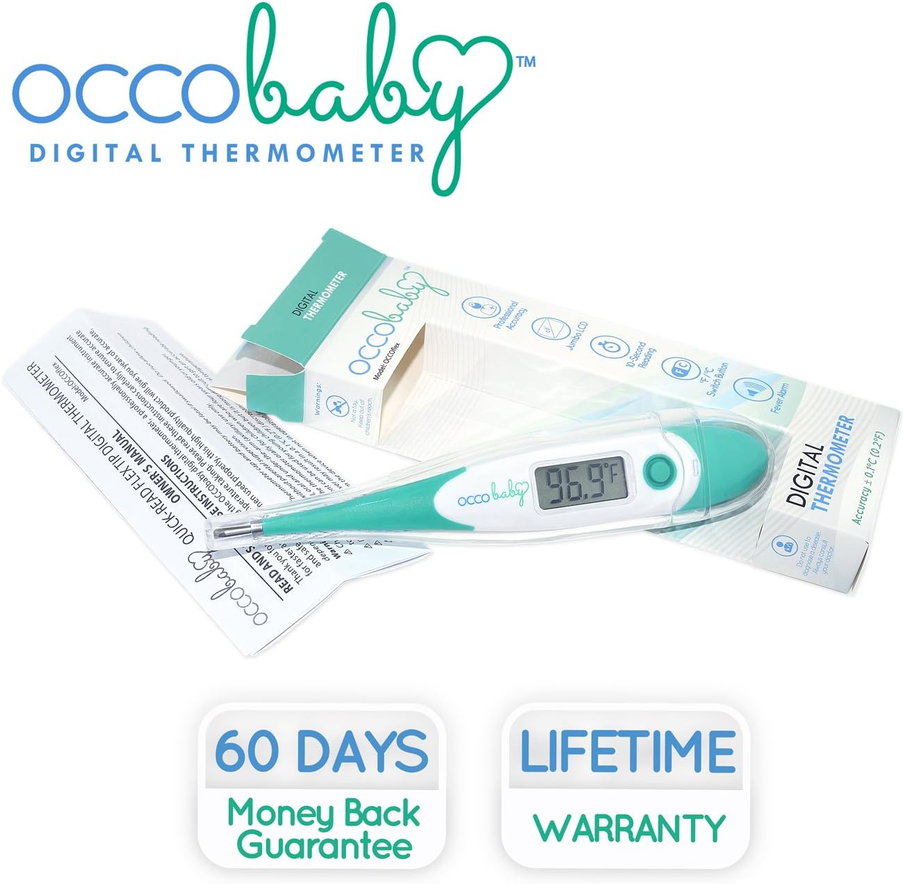 OCCObaby Clinical Digital Baby Thermometer - LCD, Flexible Tip, 10 Second Quick Accurate Fever Alarm Rectal Oral & Underarm Use - Waterproof Baby Thermometer for Infants & Toddlers