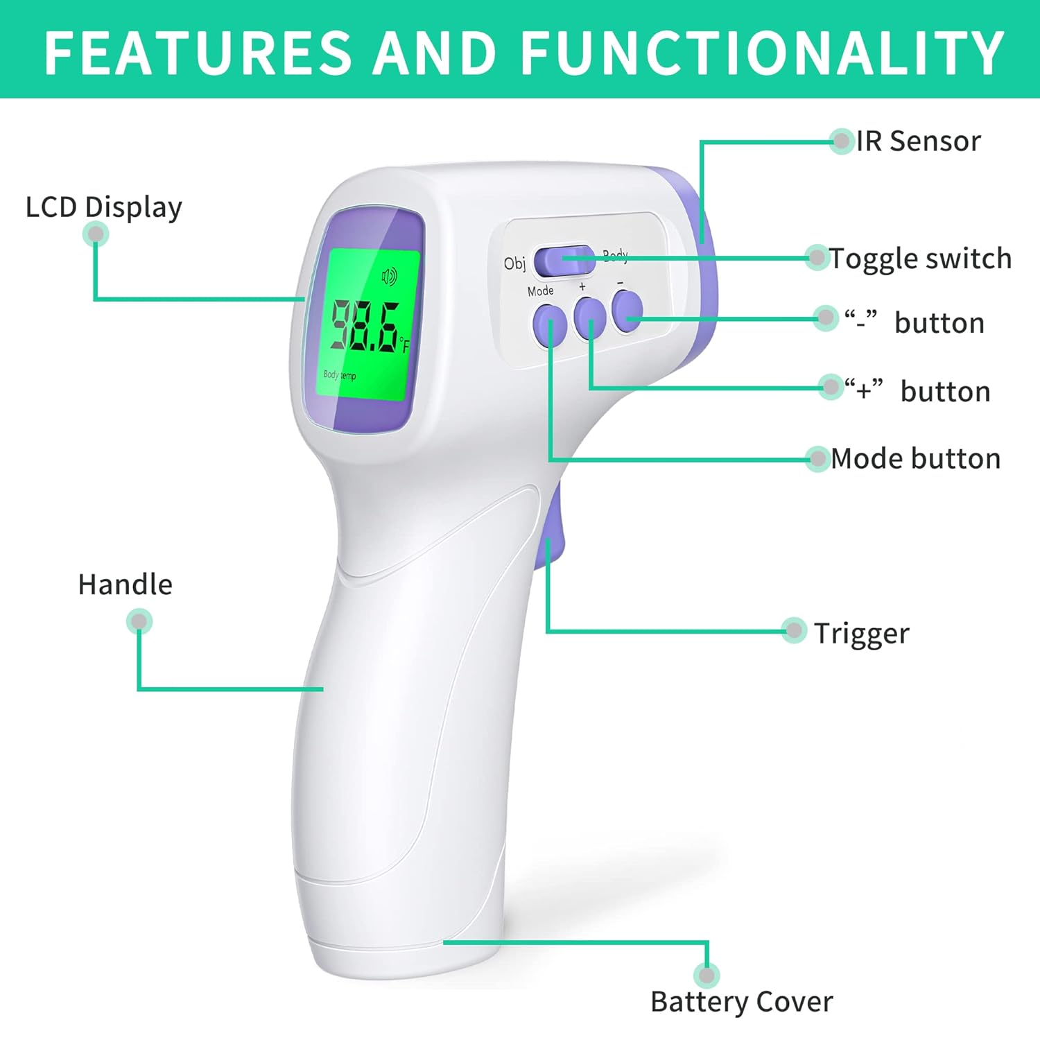 • ➤【Multifunctional】The forehead thermometer is designed for all ages, adults, babies and elders. In addition to measuring forehead, it can also measure room, object, and liquids temperature. Great choice for families, nursery, hotels, school.