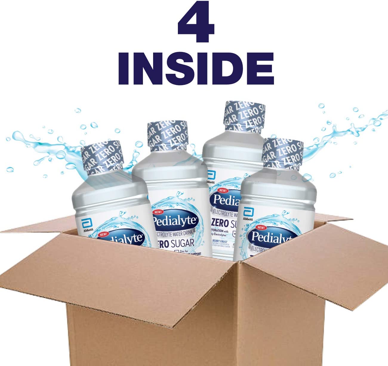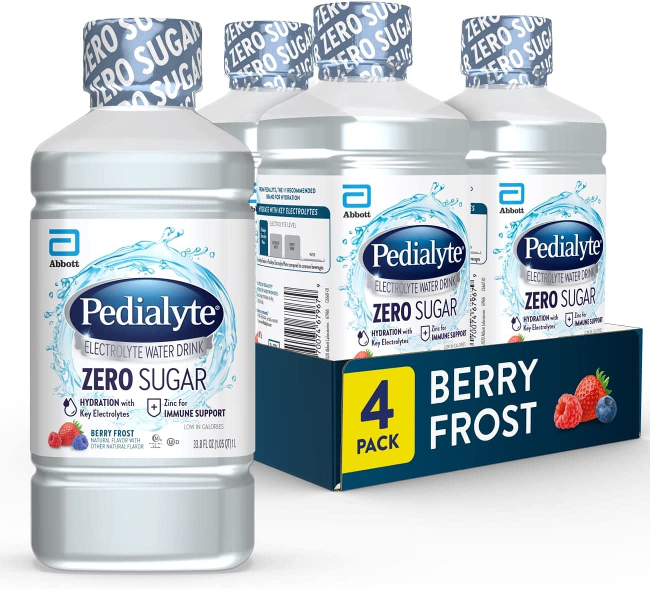 Pedialyte Electrolyte Water with Zero Sugar, Hydration with 3 Key Electrolytes & Zinc for Immune Support, Berry Frost, 1 Liter, 4 Count