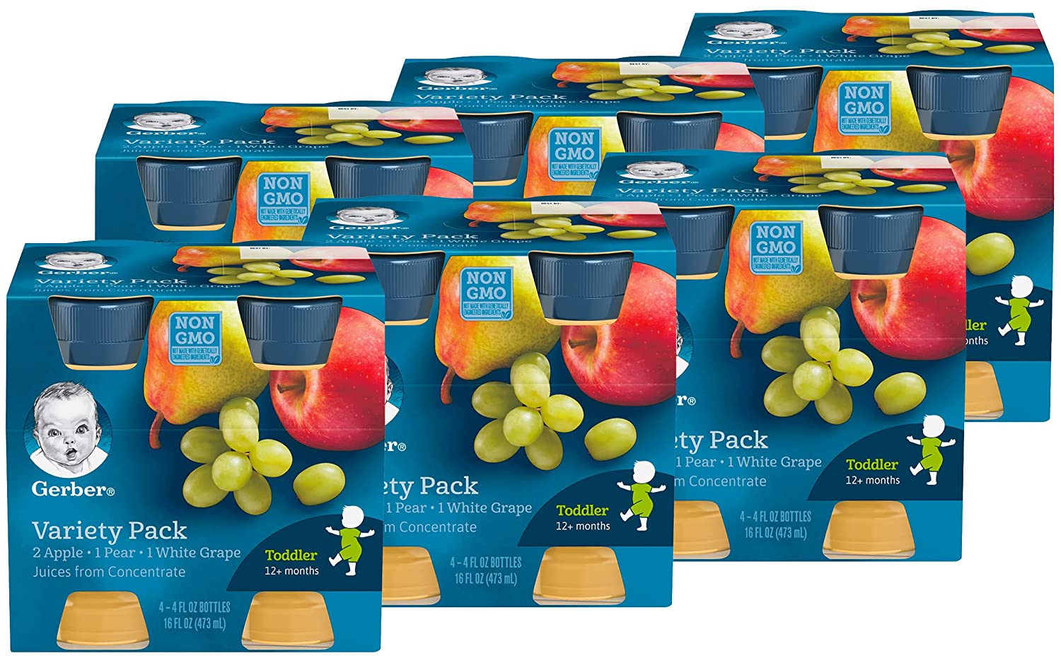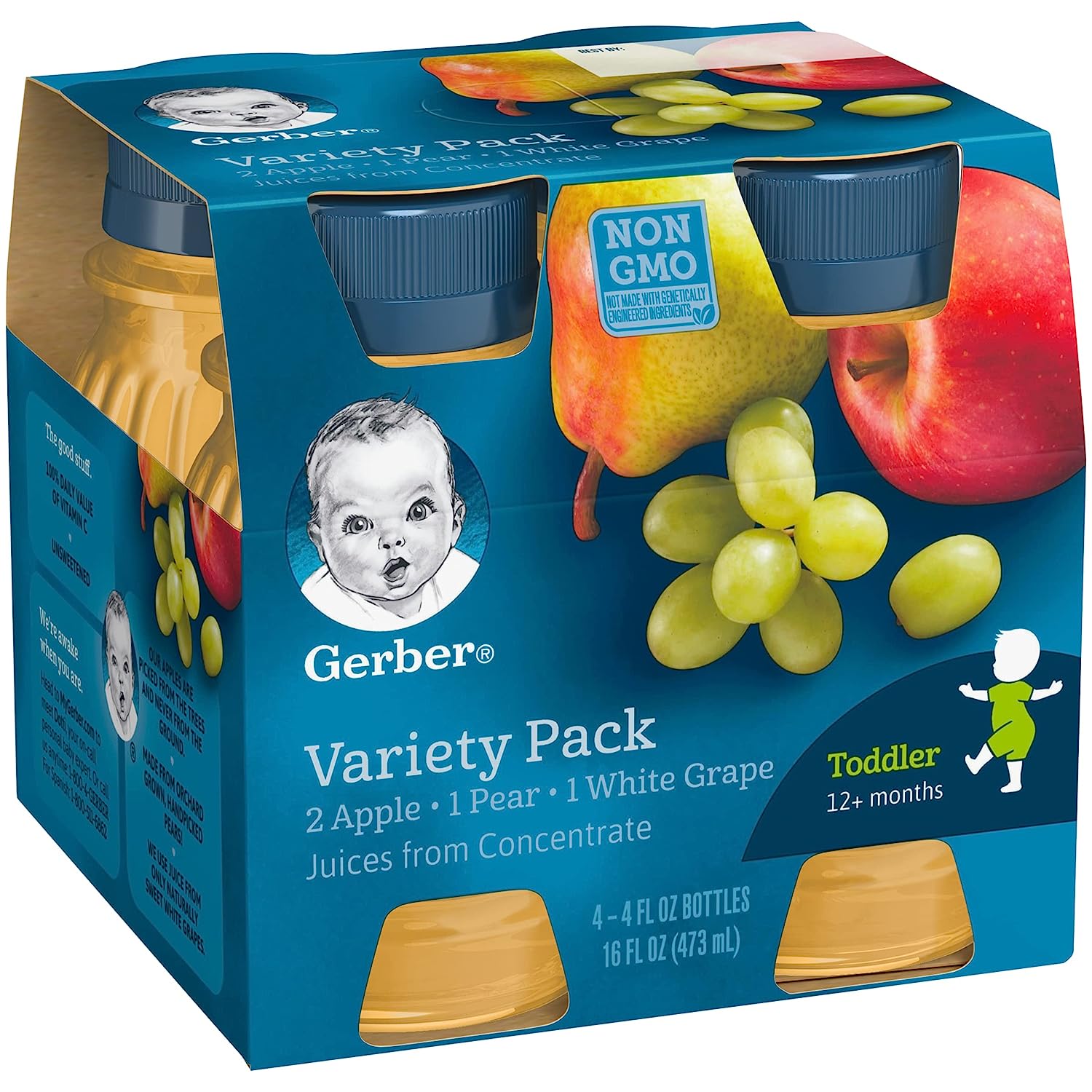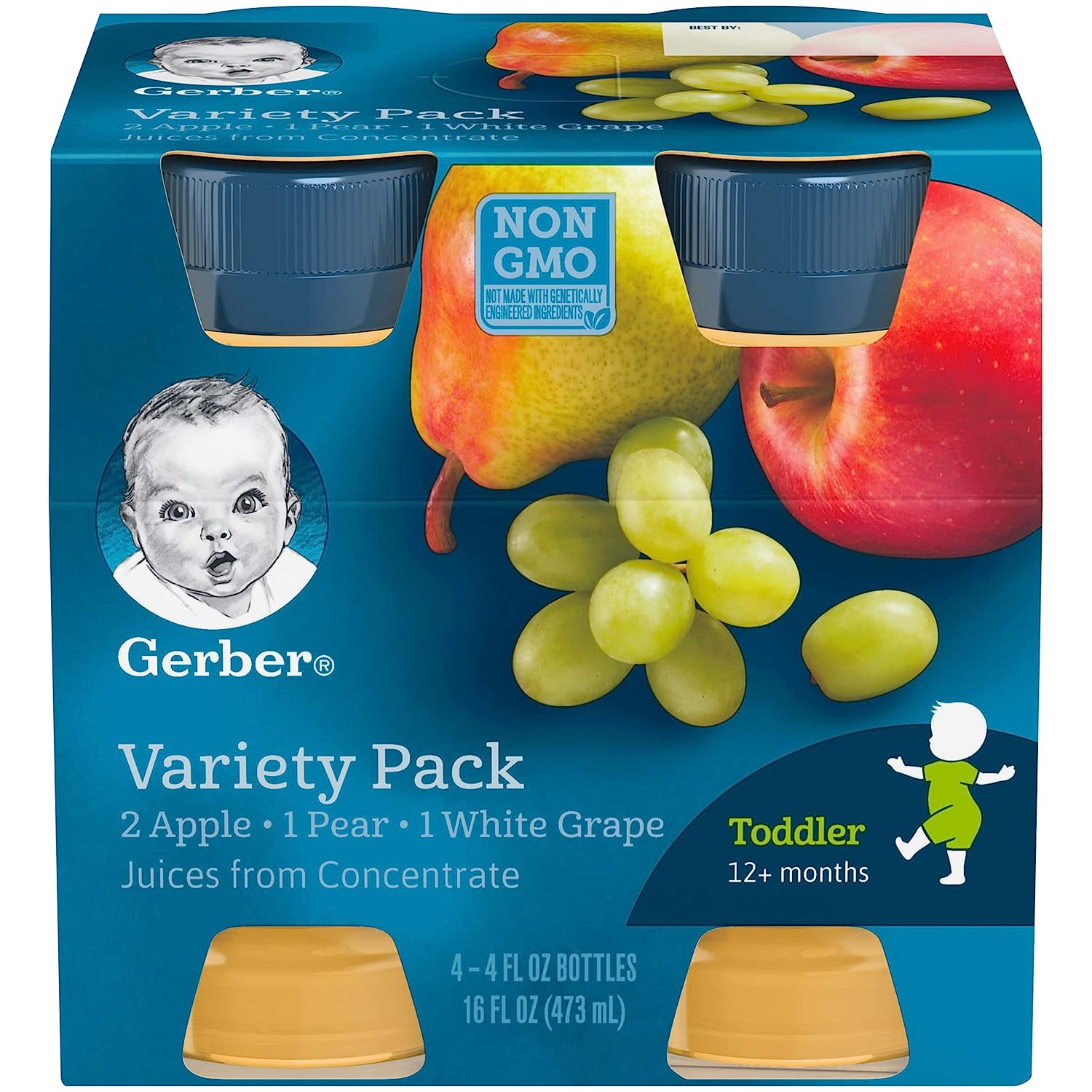 Variety Pack Includes: 2 Apple Juice, 1 Pear Juice & 1 White Grape Juice per pack. The goodness in each respective bottle starts with juice from: 3/4 apple, 3/4 pear, and 30 grapes. Every wholesome serving also includes: 100% juice with vitamin C and citric acid, 100% daily value of Vitamin C & sugar only from fruit juice. Package made with no BPA.