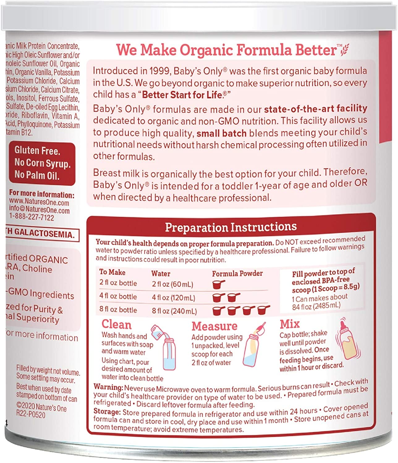Baby’s Only Organic Toddler Formula is intended for a toddler 1-year and older or as directed by a healthcare professional. Mix according to label instructions or direction from a healthcare professional to ensure appropriate nutrition.