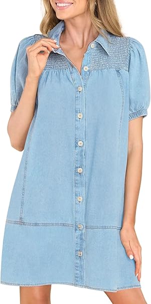 KDF Denim Dress for Women Babydoll Dress Jean Dress Summer Dresses for Women 2024 Denim Shirt Dress