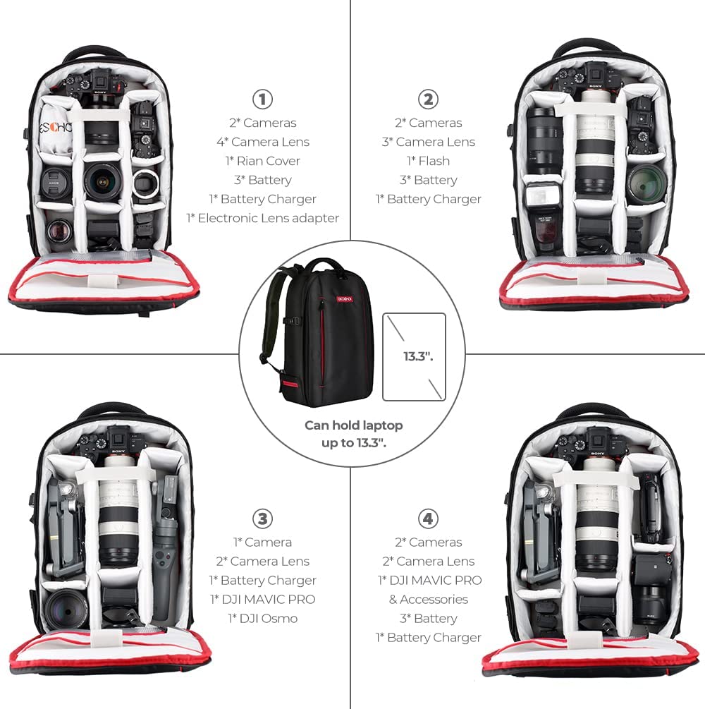 • 🎄 Padding makes this professional camera backpack comfortable to wear. The shoulder straps are designed to distribute the weight well