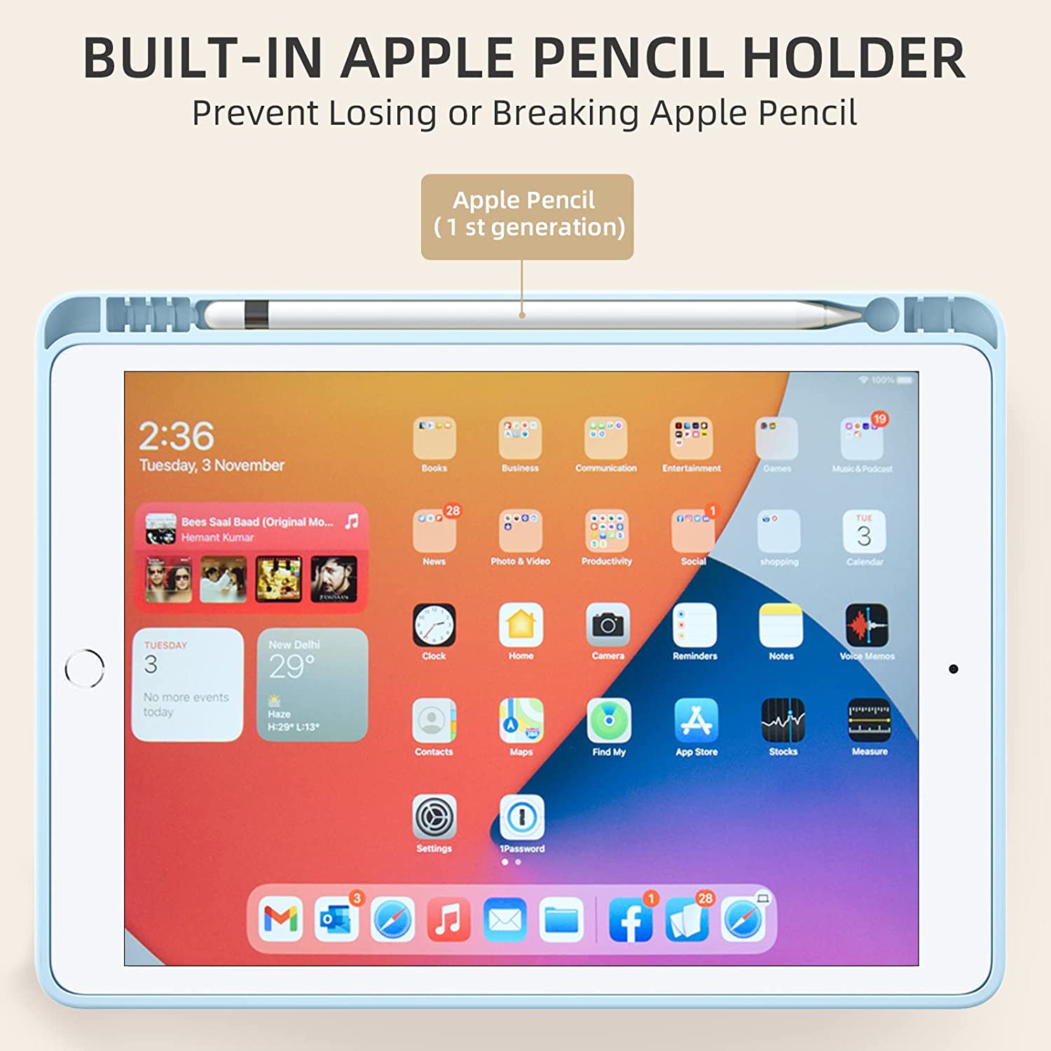 • [Built-in Apple Pencil Holder] Built-in Apple Pencil holder, conveniently place and remove your pencil, prevent losing or breaking your Apple Pencil when you're walking or outdoor(Please note: Pencil is Not included)
