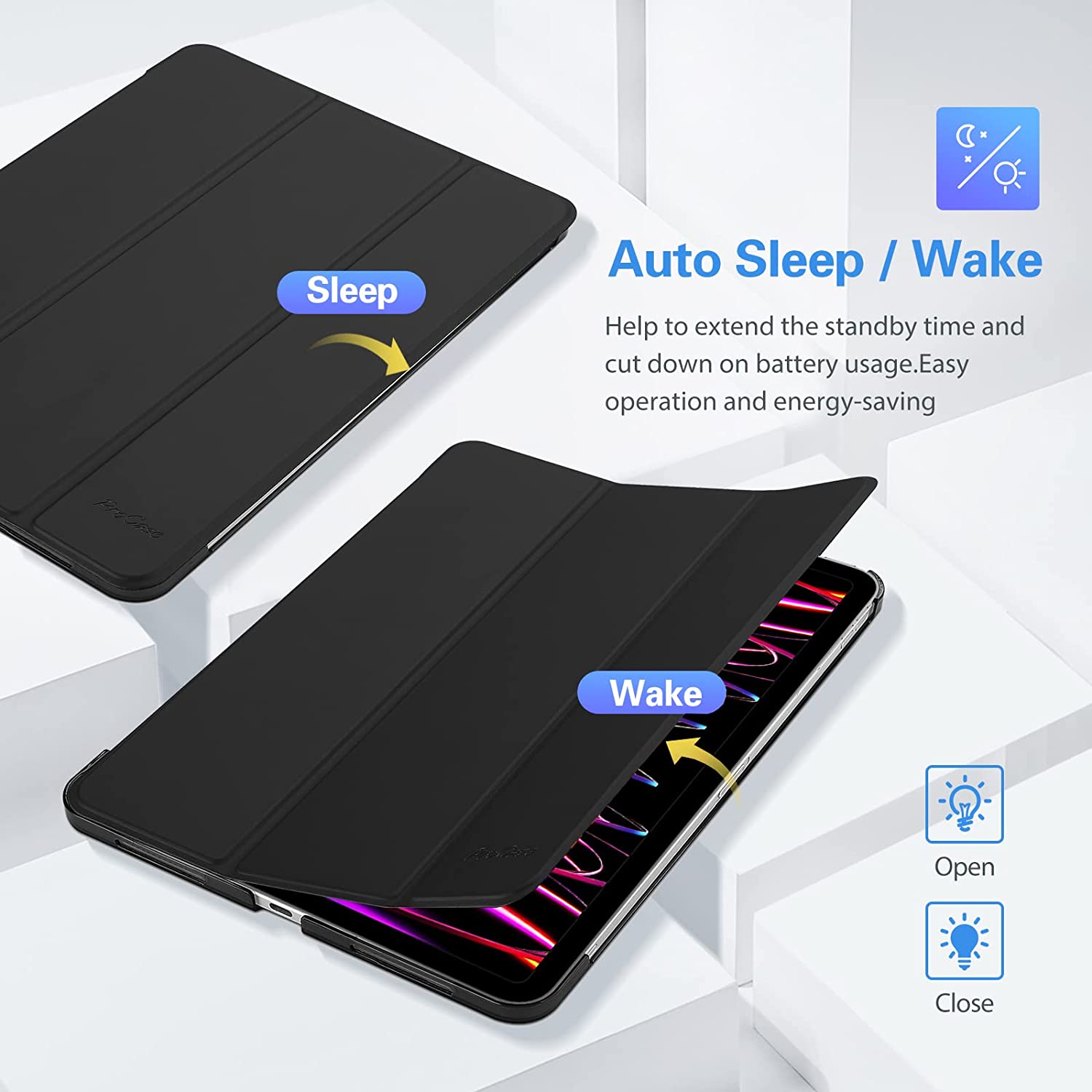 ProCase iPad Pro 12.9 Case 2022/2021 / 2020/2018, Slim Stand Hard Back Shell Smart Cover for iPad Pro 12.9 Inch 6th Generation 2022 / 5th Gen 2021 / 4th Gen 2020 / 3rd Gen 2018 -Black
