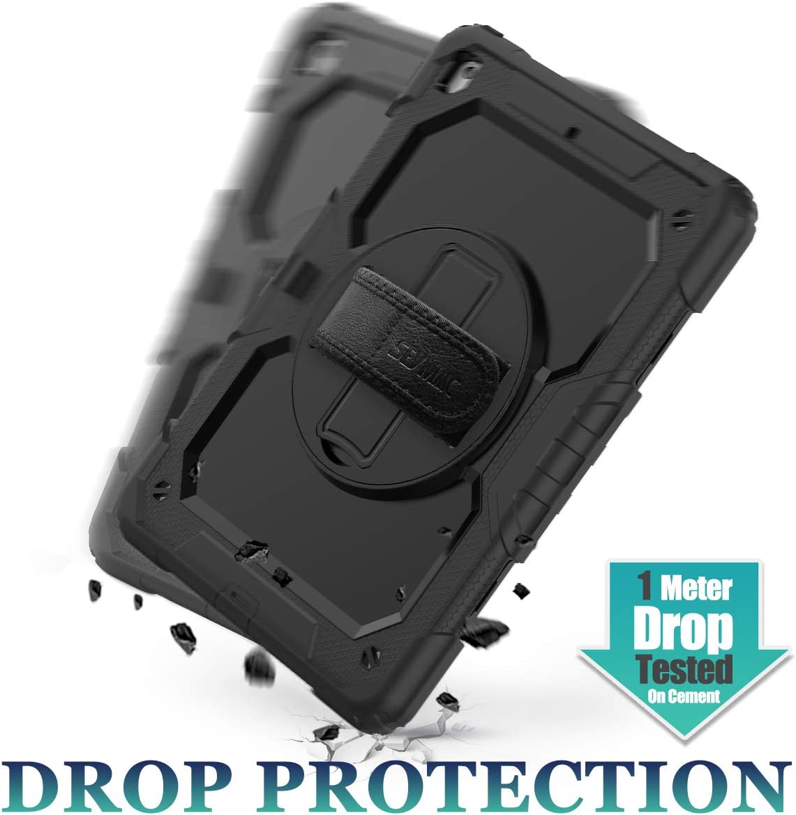 SEYMAC stock iPad 9th/ 8th/ 7th Generation Case 10.2’’, Shockproof Case with Screen Protector Pencil Holder [360° Rotating Hand Strap] &Stand, Case for iPad 10.2 inch 2021/2020/2019 (Black)