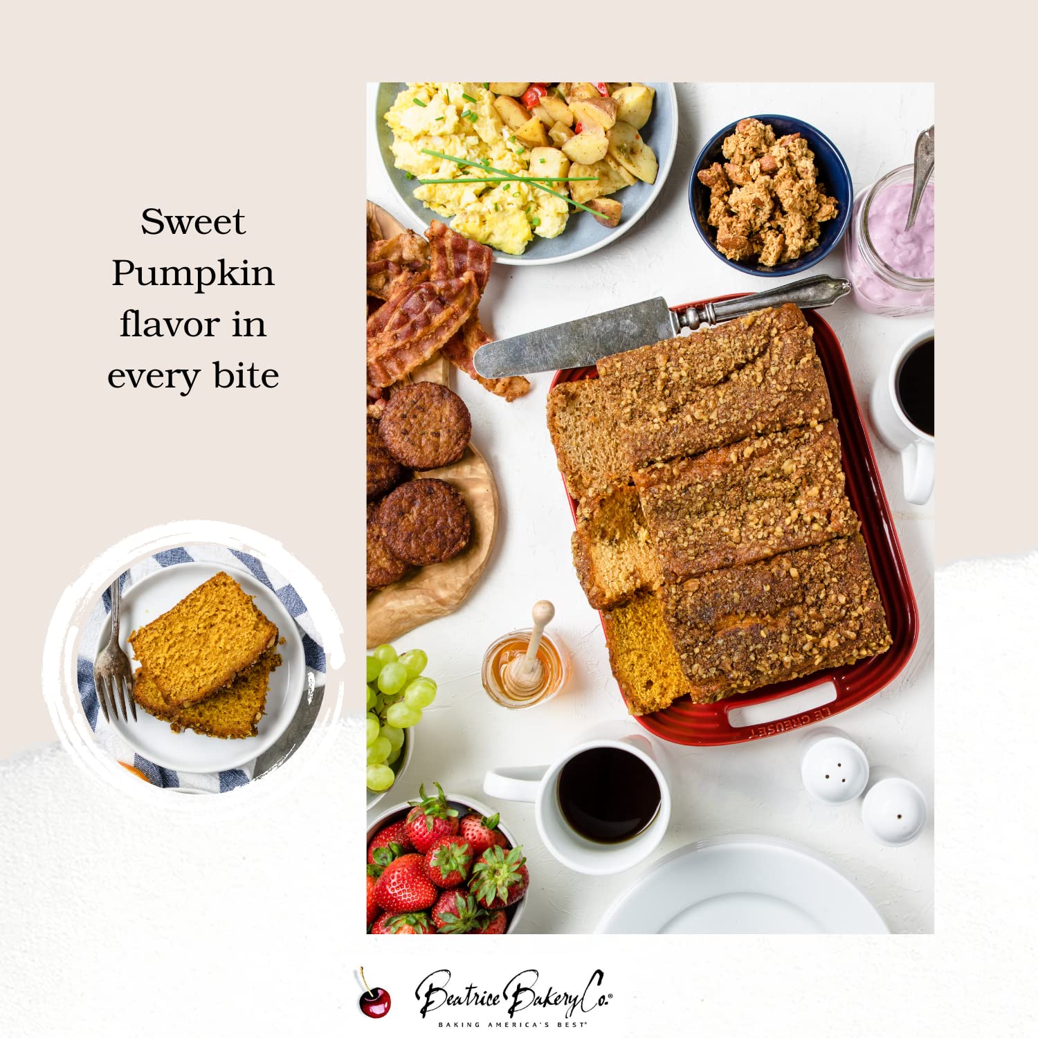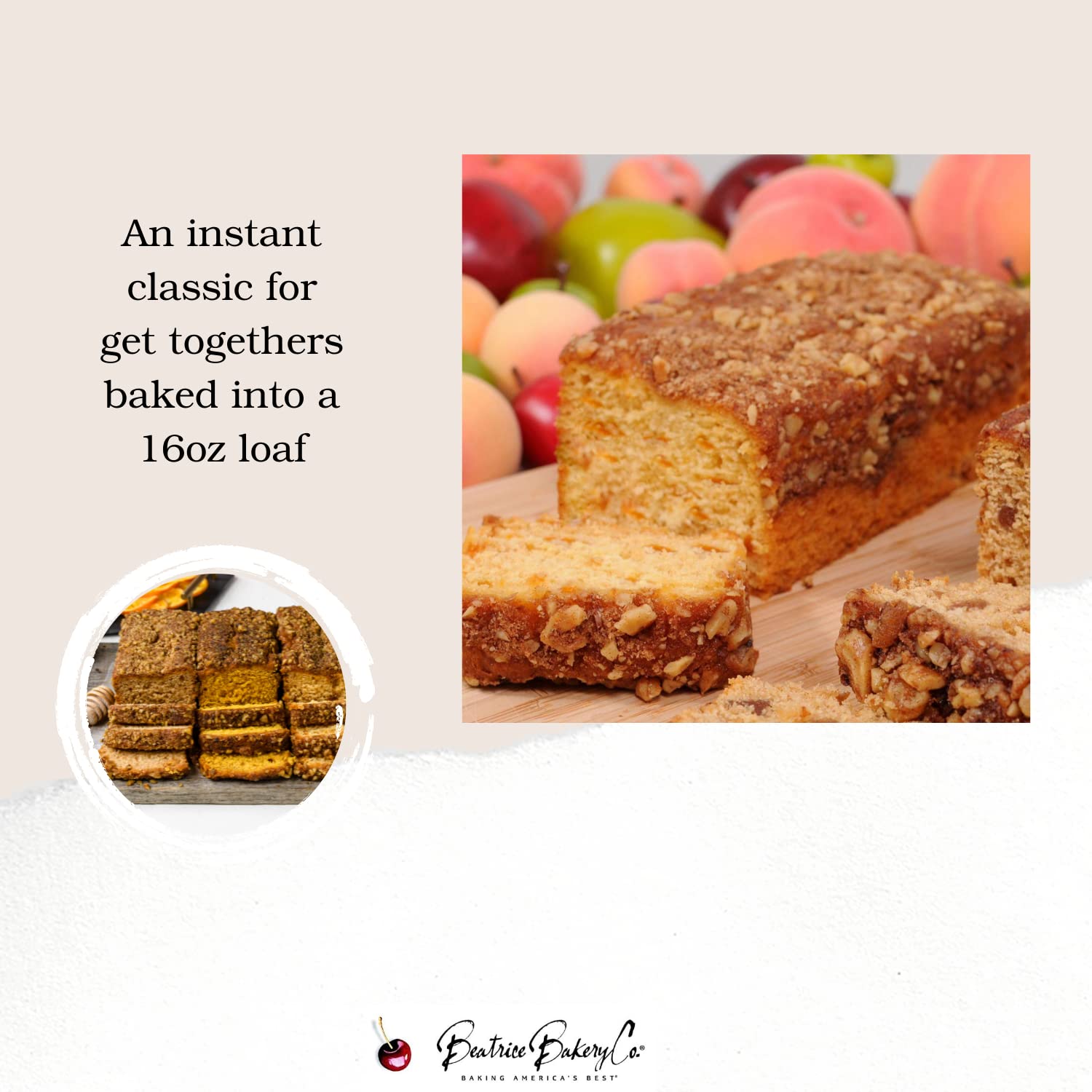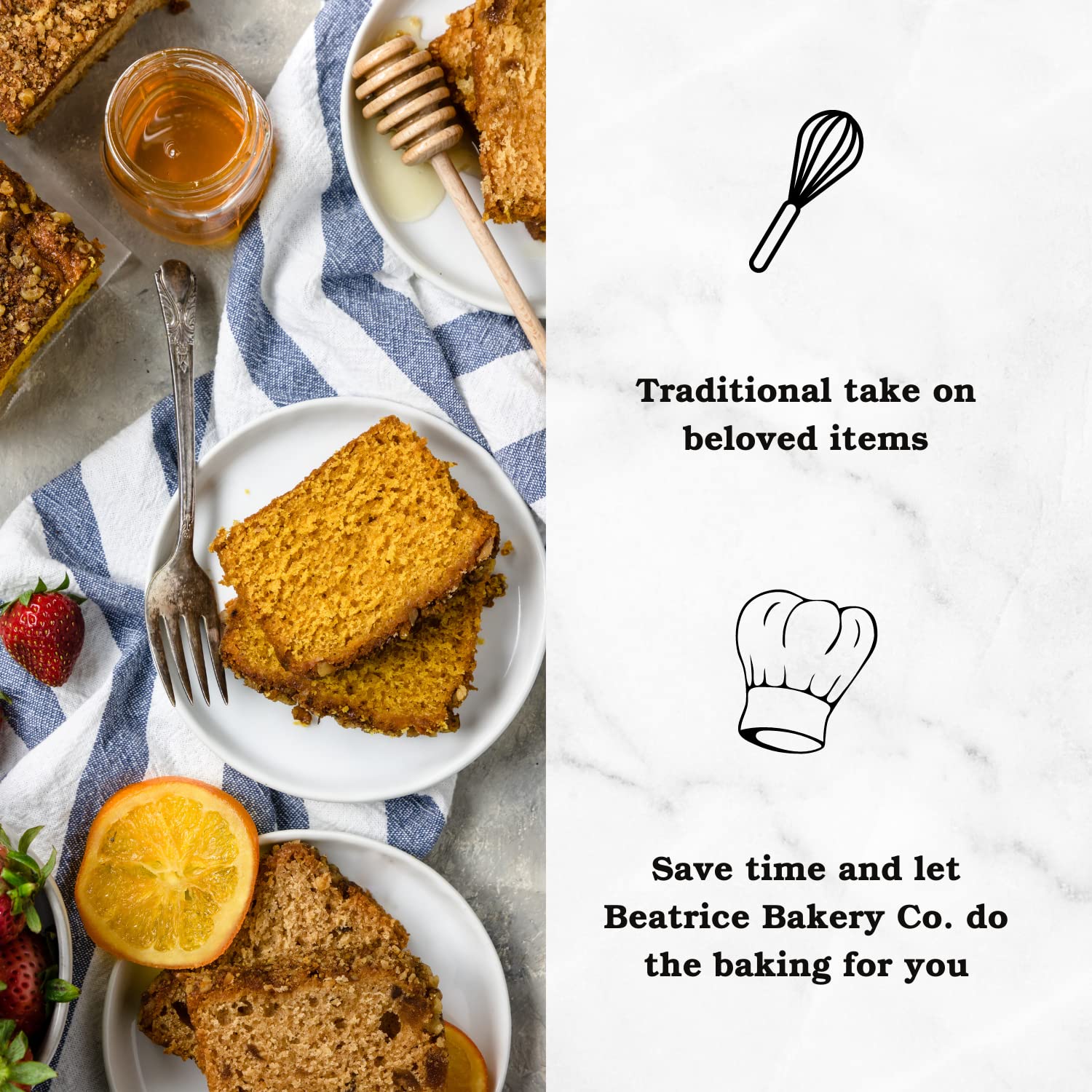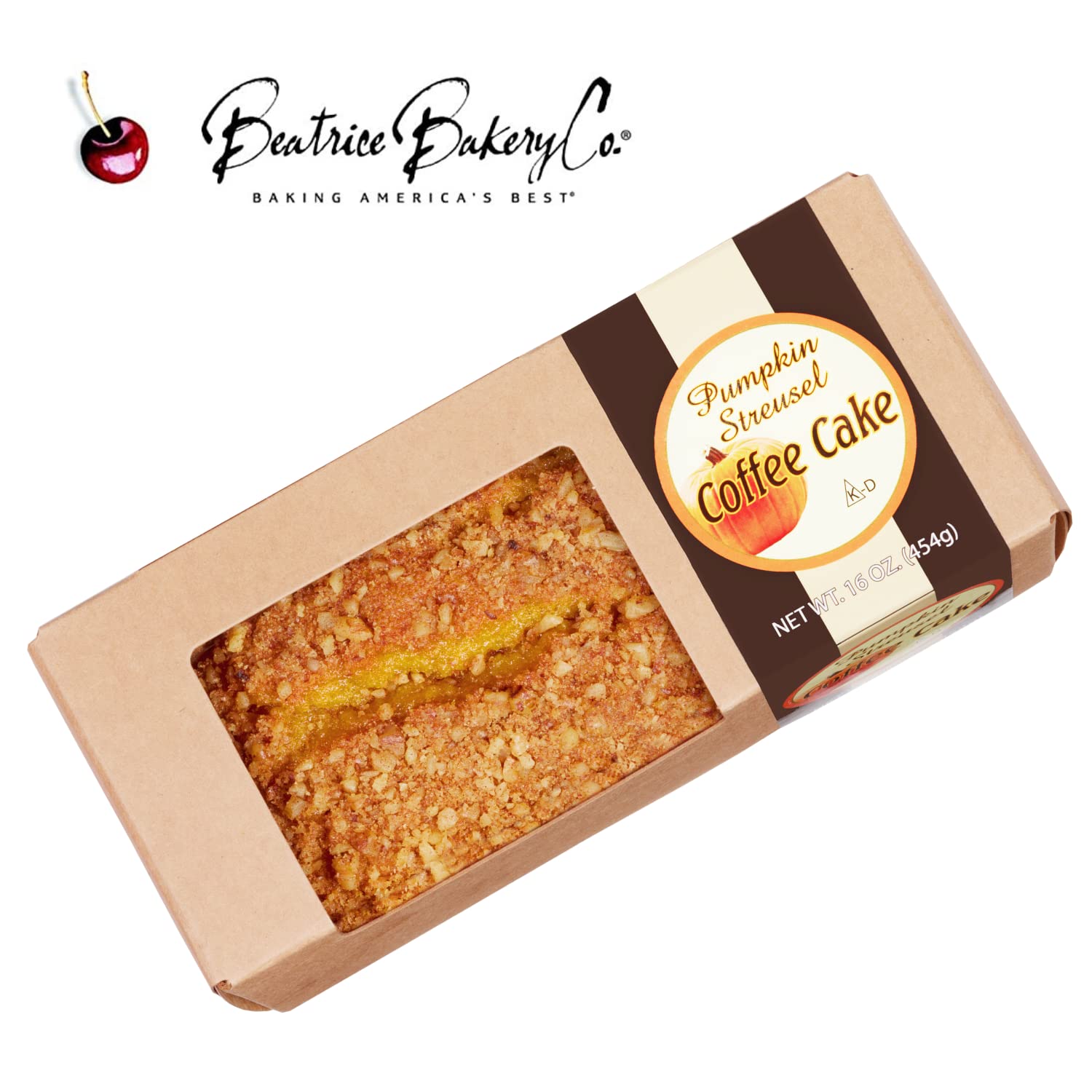 Beatrice Bakery Co. Delicious Pumpkin Streusel Coffee Dessert Gourmet Cake with Topped Cinnamon, Brown Sugar and Walnut, Baked in Small Batches Moist Flavorful Cake in 16 oz in Box