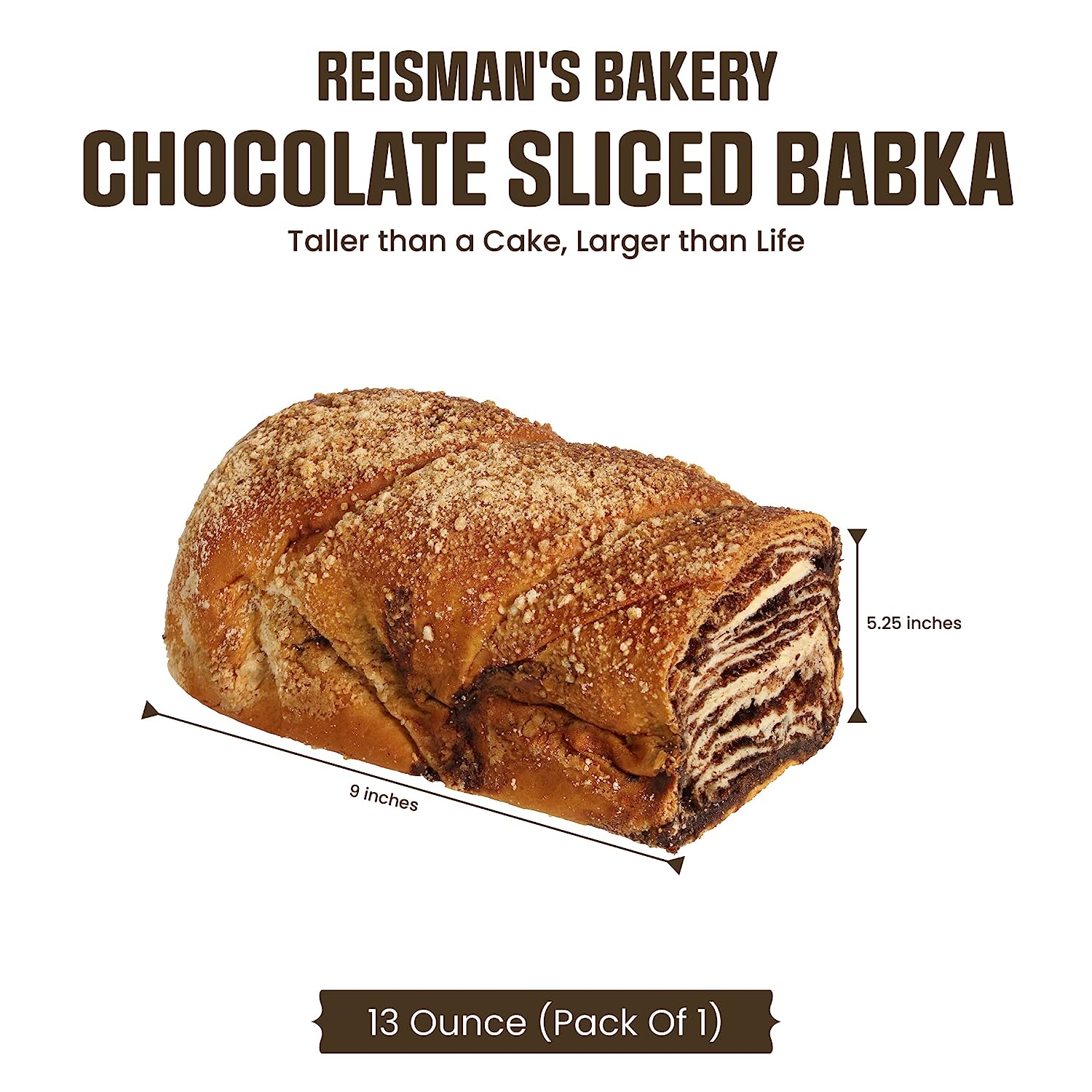 • Perfect Gift: Reisman's Bakery’s babka cakes make every celebration better and sweeter. Give your loved ones a gift of our babka cake on any occasion and whisk up their happiness in a blink. Create lasting memories with Reisman’s fresh babka cakes