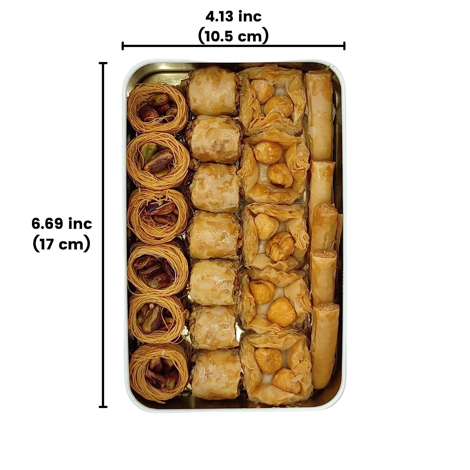 • SUITABLE FOR VEGETARIANS: Our baklava is suitable for vegetarians, it contains milk sourced butter ghee, it is Dairy and halal product. This dessert is well known as persian baklava or lebanese baklava