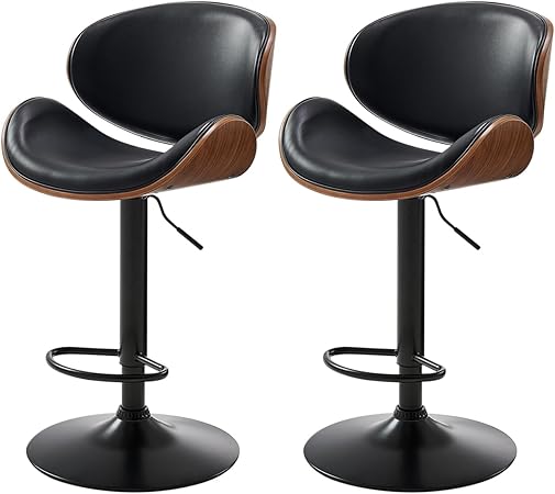 Adjustable Bar Stools Set of 2, Counter Height Bar Stools with Backs and Footrest, Modern PU Leather Upholstered Bar Stools for Kitchen Island, Bar, Dining Room (Black)