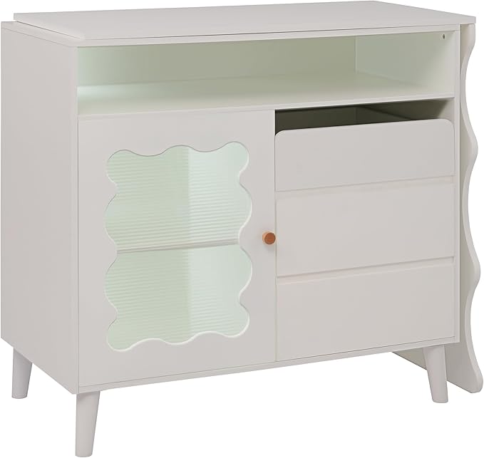 41"-79" LED Wine Bar Cabinet for Liquor & Glasses, Modern Kitchen Cabinet Coffee Bar Table with Drawers & Wine Bottle Rack, Extendable Buffet Kitchen Storage Cabinet for Dinning Room, White