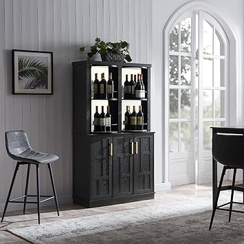 Home Source Wine Bar Cabinet, Spacious Storage Cabinet with Rotatable Wine Rack, Tall Bar Cabinet for Home, Wine Buffet Cabinet and Elegant Sideboard for The Dining Room, Living Room, Black