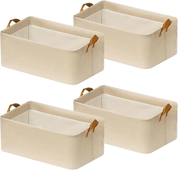 4 Pack Collapsible Large Storage Baskets with Metal Frame Sturdy Large Fabric Bins with Handles for Home Closet Shelves Organization (Beige, 18.5 x 11 x 7.5 inches)