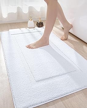 DEXI Bathroom Rug Mat, Ultra Absorbent Soft Bath Rug, Washable Non-Slip Bath Mat for Bathroom Floor, Tub, Shower Room, 43"x24", White