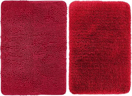 Gorilla Grip Bath Rug and Premium Luxury Bath Rug, Bath Rug Size 24x17 in, Shaggy Machine Washable Mats, Premium Luxury Bath Rug Size 24x17 in, Quick Dry Thick Shag, Both in Red, 2 Item Bundle