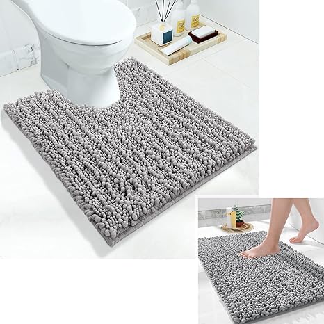 Yimobra Original Luxury Shaggy Bath Mat Large Size 24 by 17Inches + U-Shaped 24 X 20 Inches, Soft and Cozy, Super Absorbent Water, Non-Slip, Machine-Washable, Thick Modern for Bathroom Bedroom, Gray