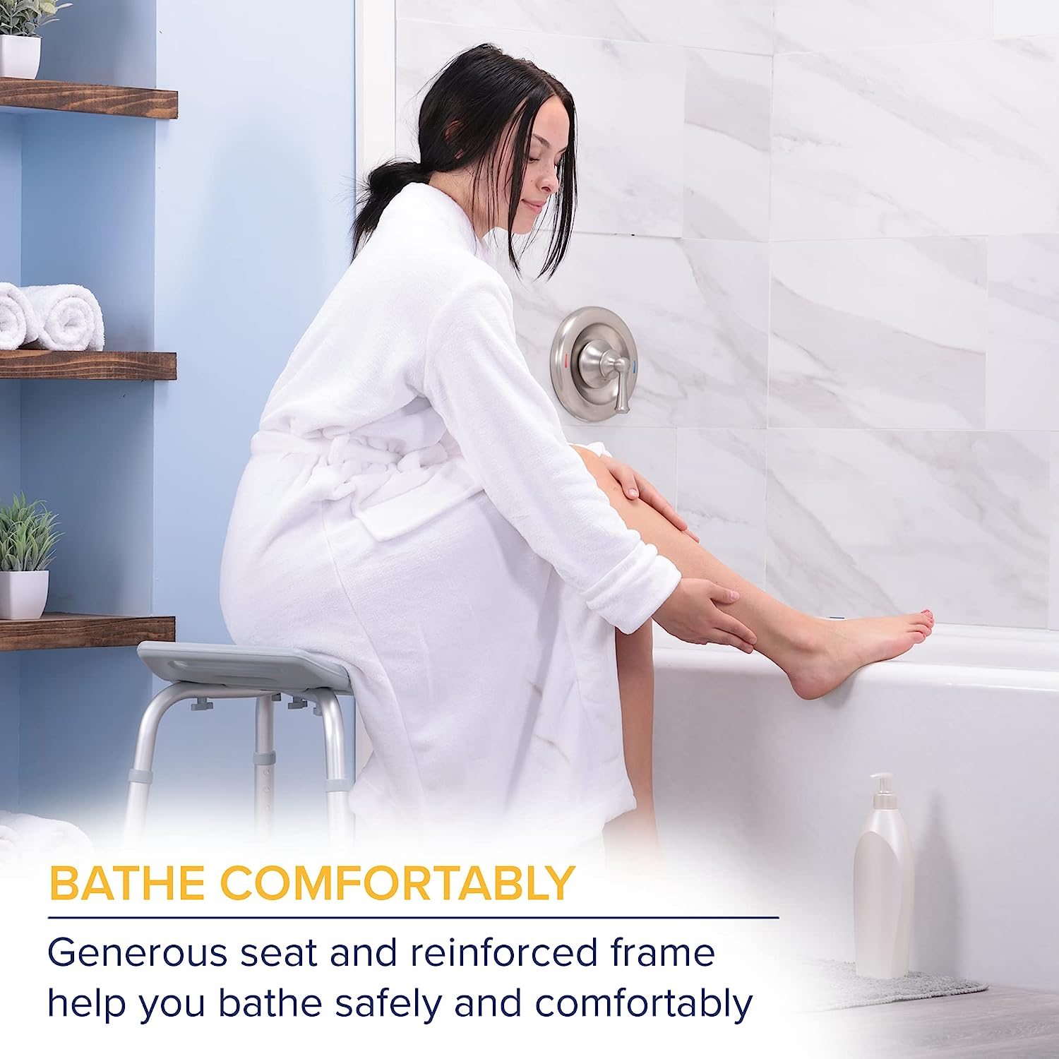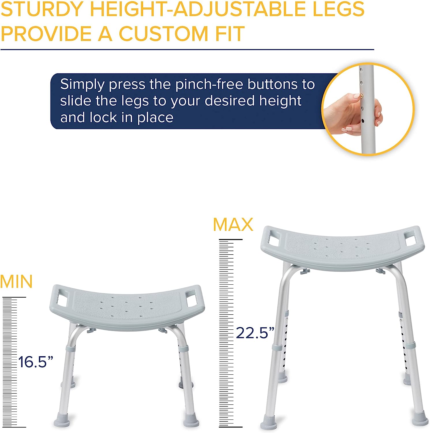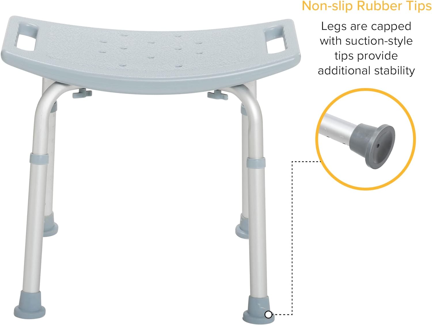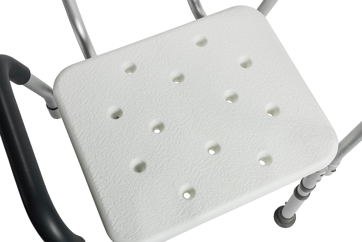 Get the support you need to bathe safely with Drive Medical’s deluxe shower chair with back. The tub bench is made of durable aluminum with legs that are adjustable in 1-inch increments. The shower stool has angled suction tips and drainage holes to prevent slipping and provide stability. Backed by a limited lifetime warranty from Drive Medical, a leading brand of mobility aids and other medical goods for more than 20 years, you can purchase with confidence.