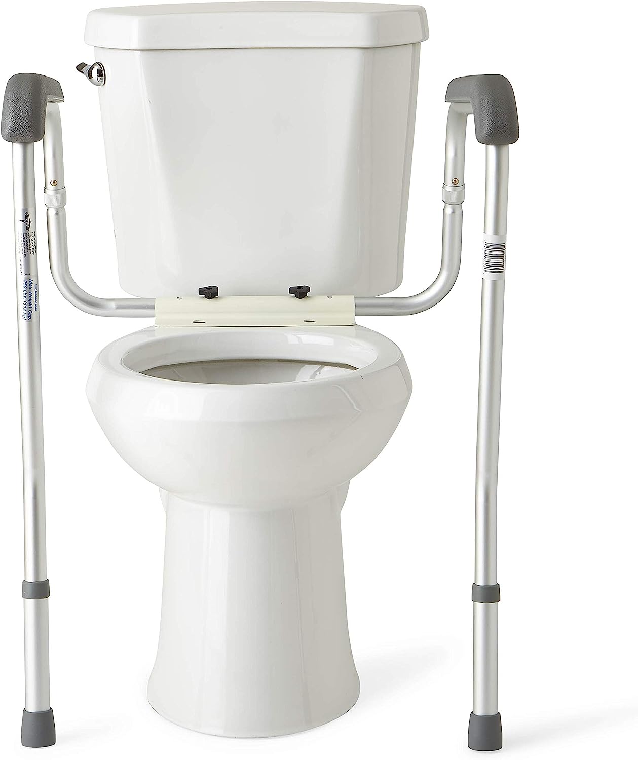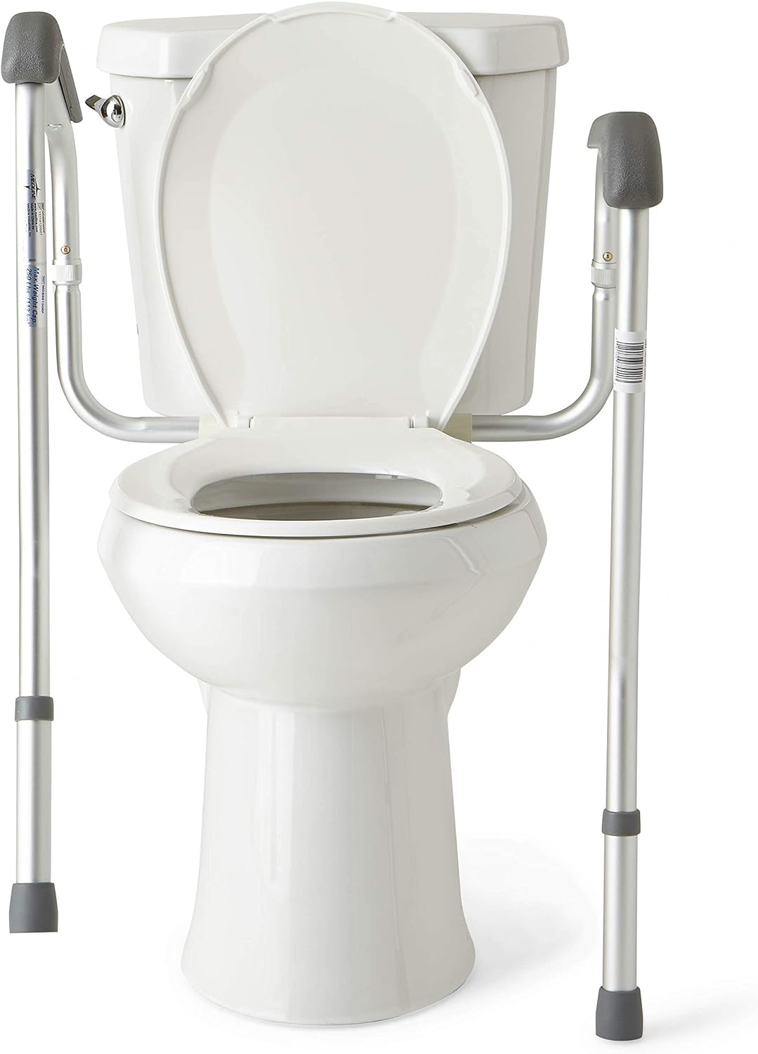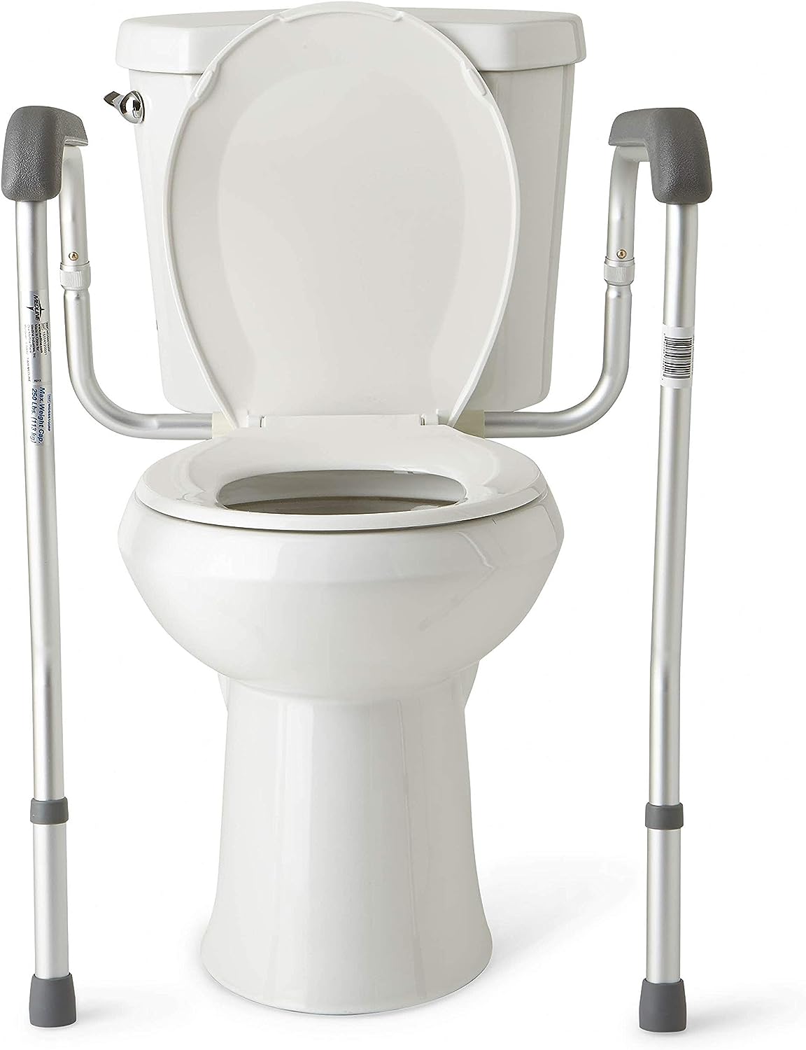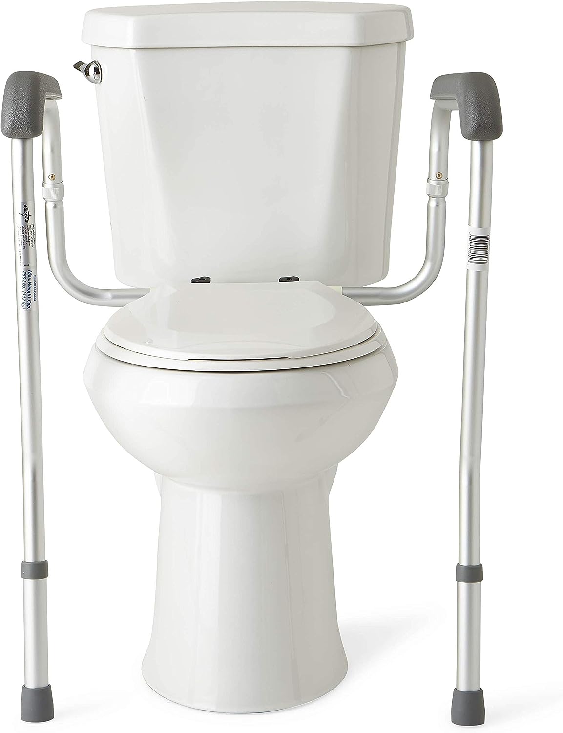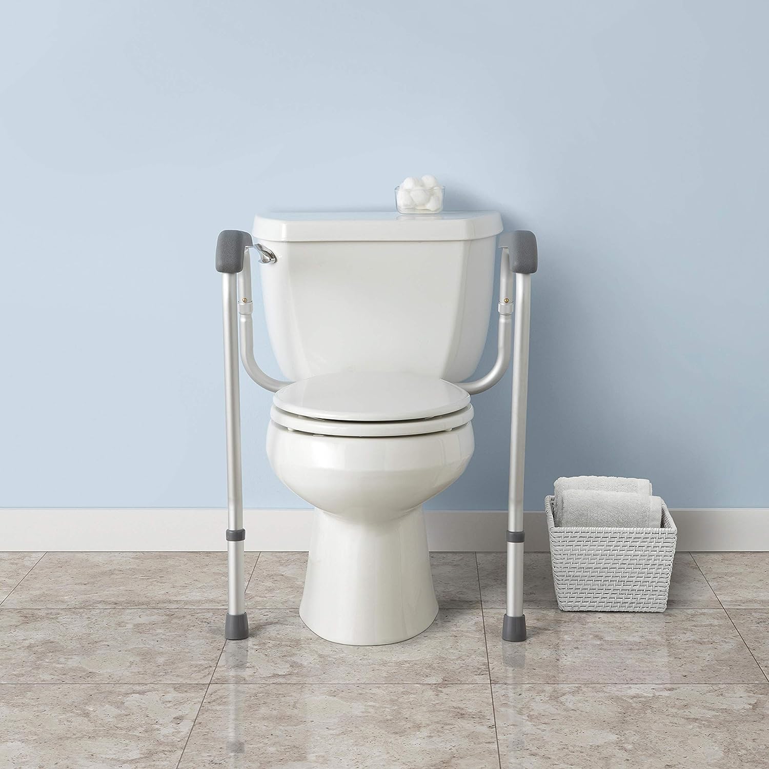 Nylon coated steel bracket attaches unit securely to the toilet while waterfall armrests provide added comfort. Handles are adjustable and rotate back to allow a wide range of comfortable and secure positions. Toilet safety frame adjusts in height from 26 to 31 inches to accommodate standard or elevated toilet seats.