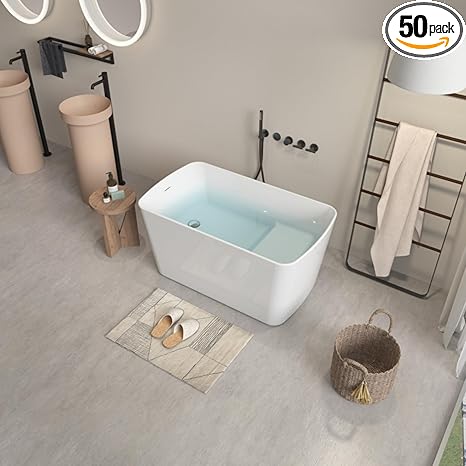 49" Acrylic Freestanding Bathtub, Square Japanese Soaking Tub with Sit-In Design, Chrome Drain and Minimalist Design Overflow, cUPC Certified (White)